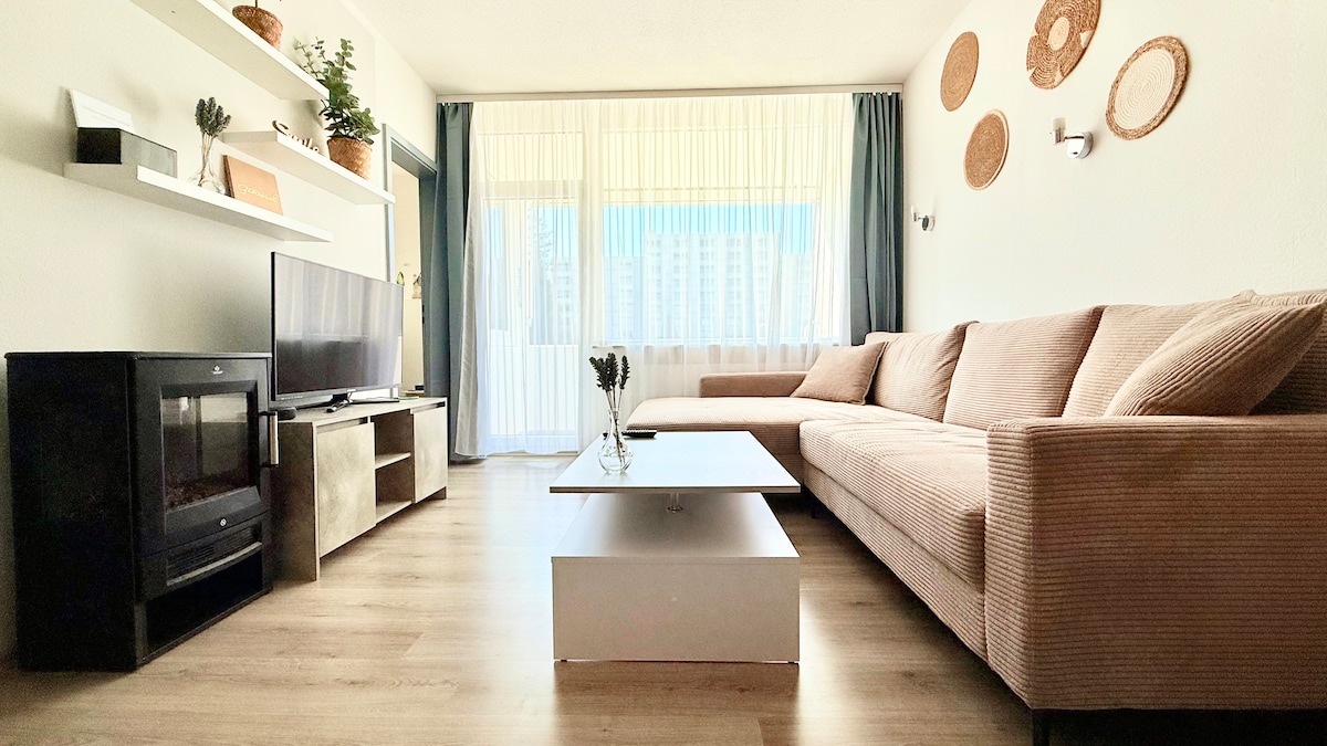 Panoramablick & Wellness pur! Genieße deine Auszeit im 5. Stock mit tollem Ausblick! Unsere gemütliche 45 qm Wohnung ist der ideale Spot für Wanderer, Biker oder ein romantisches Wochenende. Die Kristall Saunatherme, der Wald und zwei Badeseen sind bequem zu Fuß erreichbar. Alles Wichtige wie Bäcker, Gastro und Apotheke findest du direkt im Ort. Haustiere sind herzlich willkommen! Platz: Ideal für 2-4. Ein 5. Gast kann zur Not auf dem Sofa schlafen (bitte eigenes Bettzeug & Kissen mitbringen).