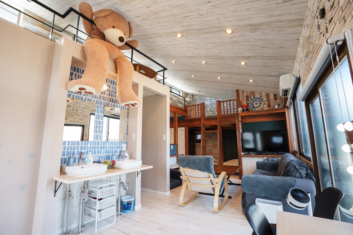 villa.hanasaku Mt.Fuji outlet是一栋新建的整体别墅,可欣赏富士山,于2019年1月开放。这是一个宽敞的两层楼,99平方米。在卧室Ashley家具的高级家具突出了房间在客厅里有高级家具,包括一张大理石餐桌,你可以舒适地放松。在60英寸壁挂式电视中,不仅电视广播,而且电影和电视剧在Netflix中也是无限的。厨房也是如此。它很宽敞,即使长时间逗留也很安全,因为还有锅,煎锅和菜肴。从浴室和卧室的窗户可以看到富士山,景色非常美妙。它还配备了高效的按摩椅。餐厅供应美味的意大利餐厅,日本料理,中餐馆等。附近有便利店Gotenba Inter的巴士距离火车站和出口有7分钟的步行路程,巴士也出来,前往河口湖和富士急高地也很方便。(35km 45分钟)每个房间都配有空调,夏天或冬天都很舒适我们已经获得旅馆的许可,请保持安逸。