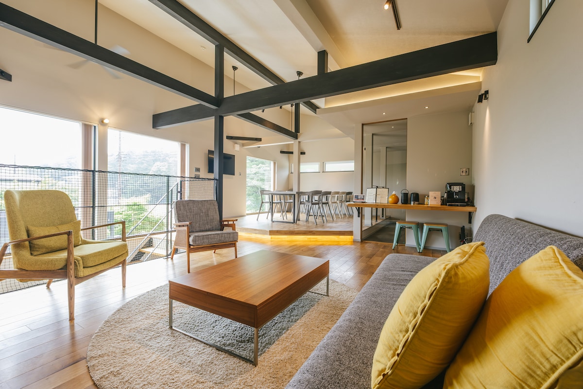 A private luxury villa with panoramic Mt. Fuji views. 【We recommend staying 2+ nights and coming by car. 】 ☆ Highlights ● Sleeps up to 6 guests ● Convenience store: 1-minute walk ●Close to Chureito Pagoda (Arakurayama Sengen Park) ● Explore the area by car or e-bike for Fujiyoshida & Lake Kawaguchi area ● Taxi available from nearby stations ● Terrace BBQ available ● Projector for cozy movie nights ● Supermarket / 100-yen shop / drugstore: 5 minutes by car ● Free parking & free Wi-Fi