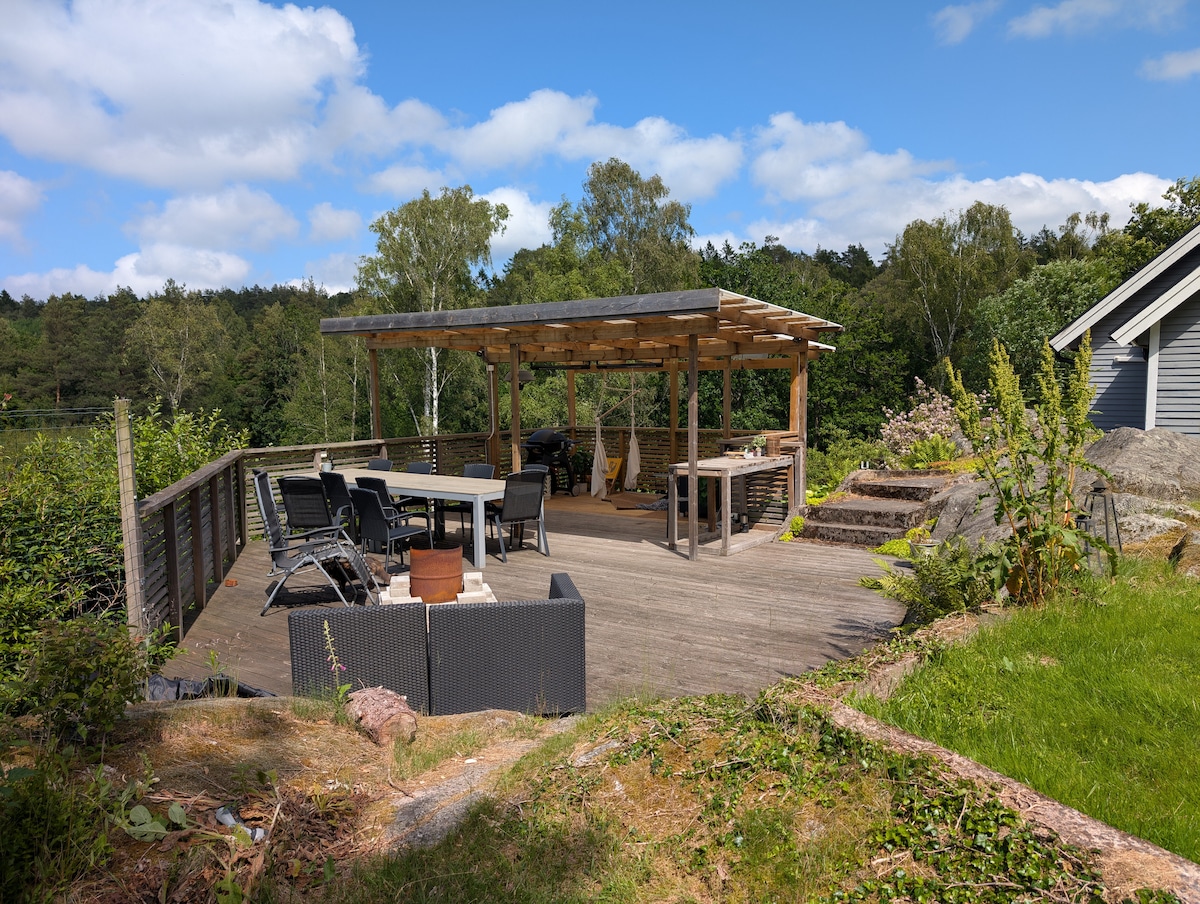 Welcome to my summerhouse just 150 meter to the ocean. Here you have a really nice place with views over the ocean. Here you also find a small beach and rocks. Only nature and water around the corner. Perfect for those who want a calm and nice place to be at during spring, summer or autum. Its 21 km till Gothenburg and 25 km to Martstrand (beuatiful summer island).