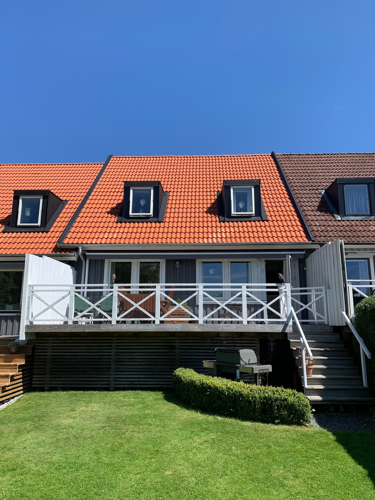 Modern oas nära havet och Göteborgs skärgård. Nyrenoverat radhus på 2 våningar, 200 kvm. Endast 5 min till havet 🚗 och 10 min till centrum med direktbuss 🚌 (hållplats 2 min bort). Solläge från morgon till kväll, två nyrenoverade badrum varav ett med bastu. Modernt, öppet kök med stor köksö och vinkyl & bubbelvatten. Stor terrass med utekök med grill & kokplatta & eldstad. 75 tum tv med PS5. Mataffär nära. Extra madrass kan läggas till vid förfrågan. Leksaker finns att låna, Lekplats 1 min bort