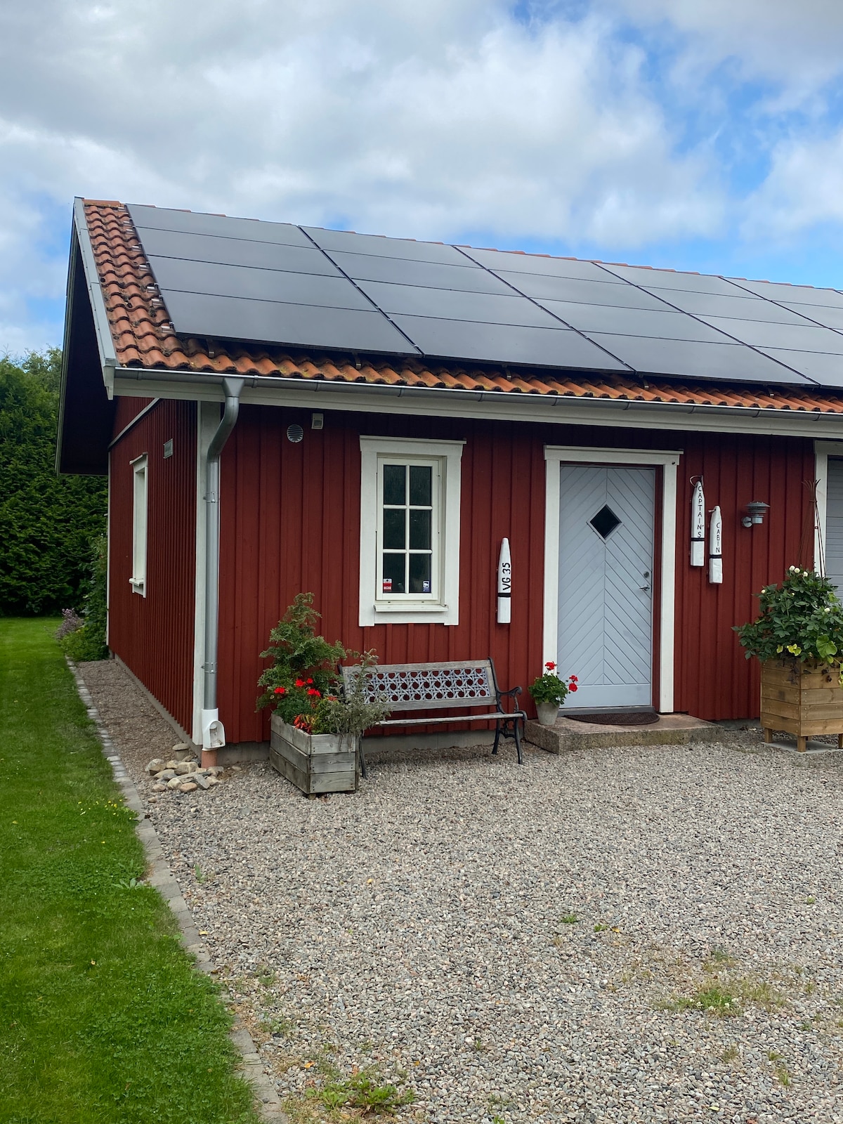 Escape to the seaside and Captain's Cabin on the lovely westcoast of Sweden with a lovely breakfast! Ett nybyggt havsnära B&B på 30 kvm med gammaldags charm och moderna faciliteter i en lummig och avkopplande miljö. Egen uteplats med trädgård. En god frukost serveras i huvudbyggnadens glasveranda med bl.a. hembakat och hemlagat. Ekologiskt och närodlat så långt det är möjligt. I priset ingår bl.a. bilparkering, TV, WiFi. Kattegattleden i närheten. Med bil Varberg 20 min, Göteborg 50 min.