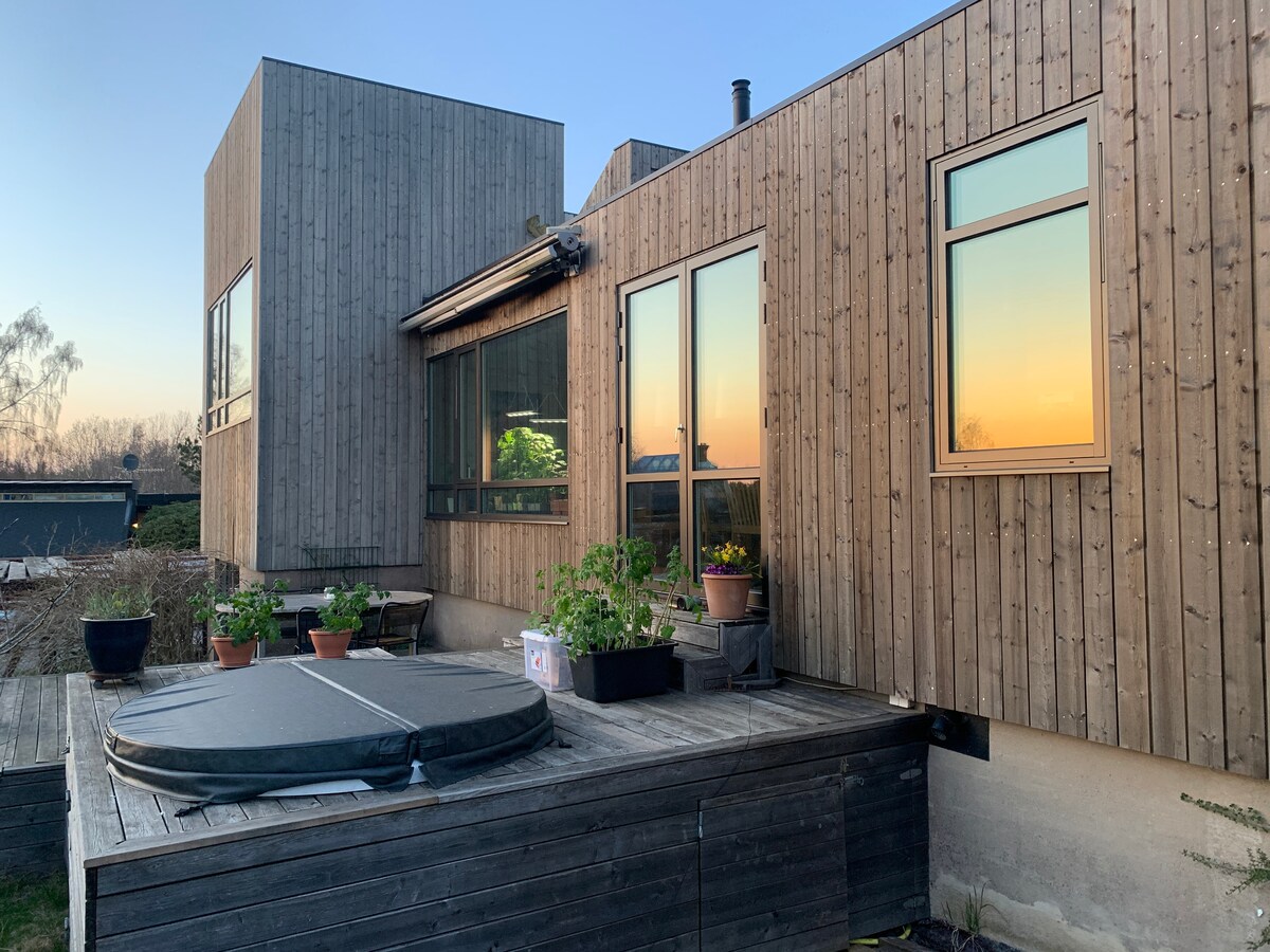 This unique guest house is situated in central Gothenburg with a fantastic view of the harbour. Enjoy the view from the sun-kissed patio or (optionally) enjoy a relaxing soak in the hot tub watching the sunset. There are several cafés, restaurants and a great supermarket an easy walk from the house. You can reach the city centre by bus (10 min), car (4 min) or by the ferry (12 min) that leaves 100m from the house. Free parking. No kitchen but coffee machine, kettle, fridge etc.