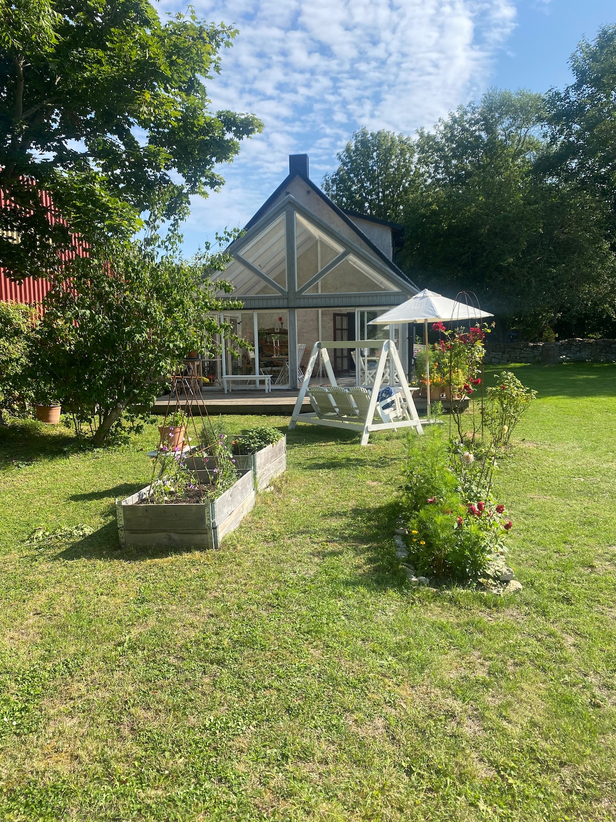 Unik möjlighet att bo på vårt ekologiska självhushåll mitt på Gotland, 15 minuter från Visby! Oavsett om dagens utflykt skall gå till härliga Fårö i norr eller lummiga Sudret i söder, mot de långgrunda stränderna i öster eller dramatiska klippkanterna i väster så startar du bra härifrån! Om du alls ska åka nånstans, du kanske finner det skönast att "bara" vara här!