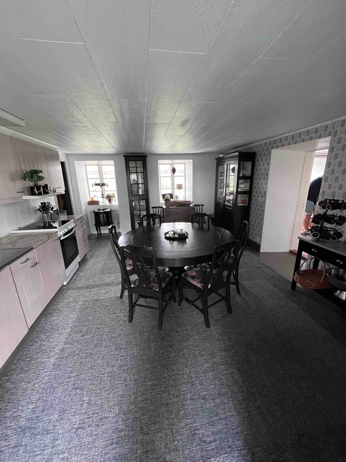 9 rok, Två nybyggda badrum ett på varje våningsplan . En separat toalett nere. Totalt tre duschar, tre toaletter. Stort kök spis kyl micro bryggare diskmaskin. Tv rum med kamin, Uterum o grill finnes, tvättmaskin Stor lantlig trädgård med vackra vyer trädgårdsmöbler (nötkreatur i hagarna runt om) Ingen rökning inomhus, Önskas lakan/handduk 100kr/pers Städning erbjuds 2800 kr bokas i förväg 7 km till havet, restaurang och bad. Laddbox till bil finns OBS veckorna 27-32 veckovis bytesdag Lördag