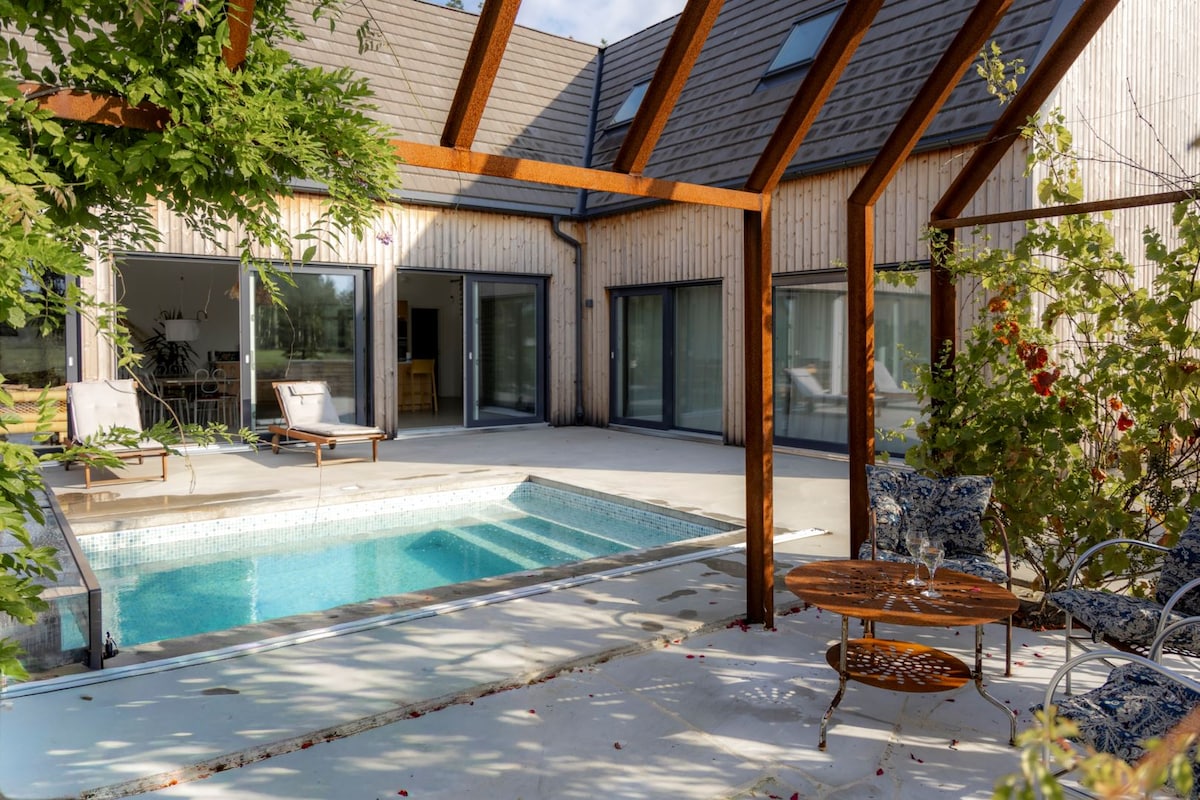 Välkommen till en sann oas! Vårt vackra hus erbjuder alla härliga bekvämligheter som man kan tänka sig under sin semester! Lämna stadens stress och träd in i ett liv av lugn lyx! Pool, bastu, solterass, härligt kök där du kan laga mat medan du kan hålla koll på barnen som badar i poolen, mysiga sovrum, rymligt sallskapsrum, 5 eldstäder för hemmakvällar, vacker och tyst miljö där du kan njuta av fågelsång på terrassen när du dricker ditt morgonkaffe. Upplev din bästa tänkbara semester!