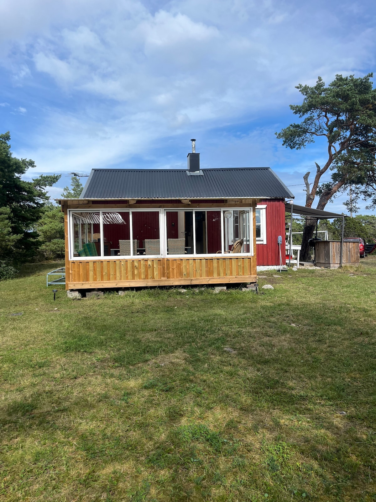 Avskild stuga på separat tomt för övernattning för 2 personer. Ta en promenad 500 meter till havet och njut av vackra sten och sandstränder. Mycket lugnt och orört område för den som gillar härliga naturupplevelser och att njuta av lugnet som naturen erbjuder. Här finns närhet till café, restauranger och närbutik inom bara några kilometer. Boendet har el, vattenanslutning samt eget utedass och utedusch.