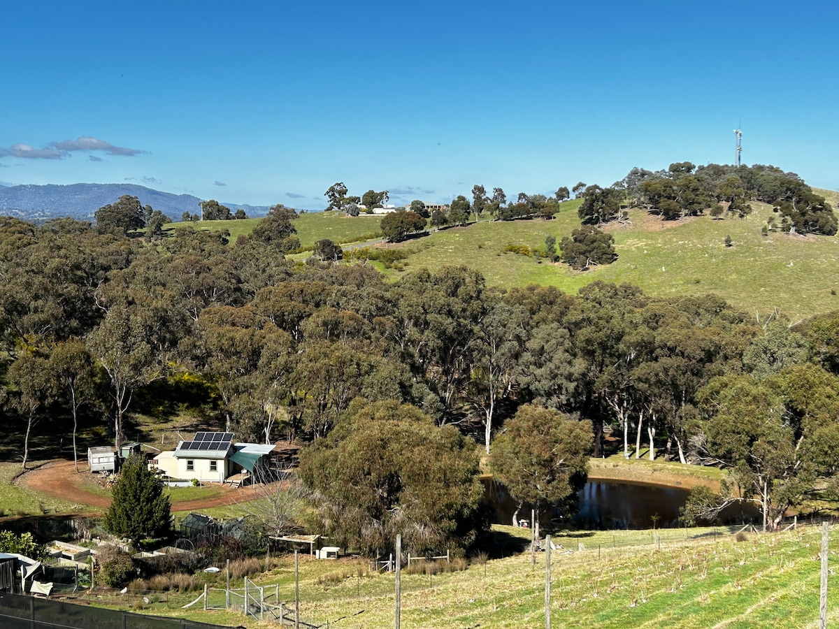 Upton Hill Cottage is self-catering farm-stay accommodation 16km into the Strathbogie Ranges from Avenel. It is surrounded by vineyards, cherry orchards, farmland & replanted & remnant bush. At 475m ASL the cottage has panoramic views of the ranges & Goulburn Valley. Guests can meet the animals, ramble, birdwatch, cycle, observe native flora & fauna, fish, do scenic tours, marvel at the ancient granite formations of the unique Strathbogie batholith, & enjoy local wineries, music & restaurants.