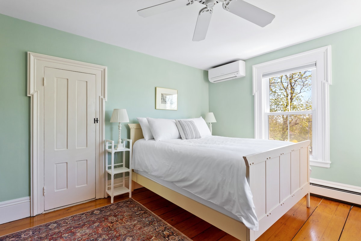 Come stay in the Sullivan Room at our charming 1845 traditional bed and breakfast, strategically located between Acadia National Park and MT Desert Island, where comfort awaits. This beautifully appointed suite hosts a Queen sized bed with optional playpen for those traveling with small children and a private bath. In addition, linens, bathrobes, hairdryer and toiletries are supplied. We'll spoil you with freshly made breakfast to jumpstart your day. Most dietary needs accommodated.