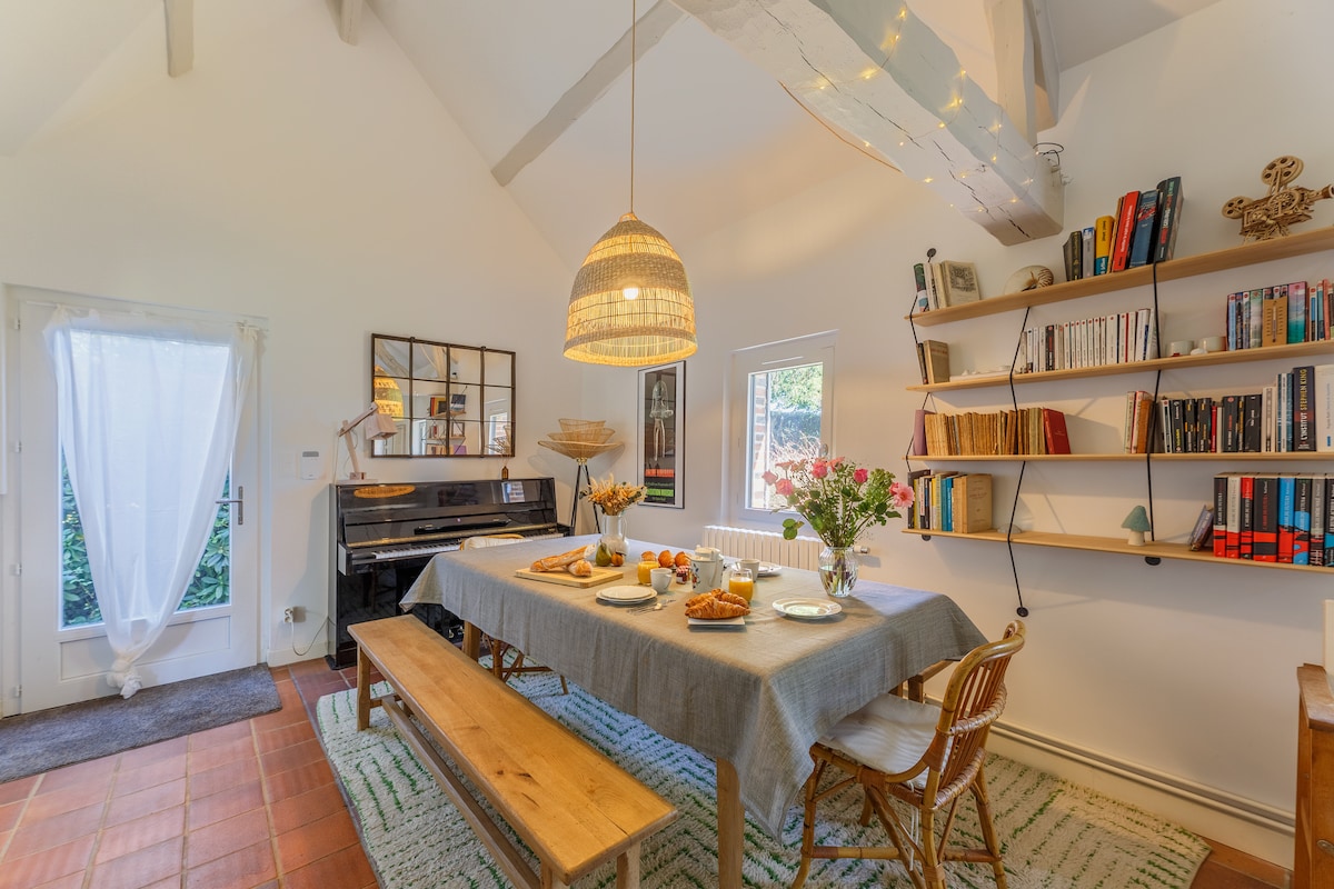 Ce logement paisible offre un séjour détente pour toute la famille. Longère de charme, entièrement équipée (lave-vaisselle, lave-linge & sèche-linge, grand four + piano à gaz...), Wifi - Fibre, grand jardin exposé Sud et très abrité (5000 m2) - linge de maison fourni - grande cheminée dans le salon. Proche Center Parc (20’). Train direct depuis Paris.