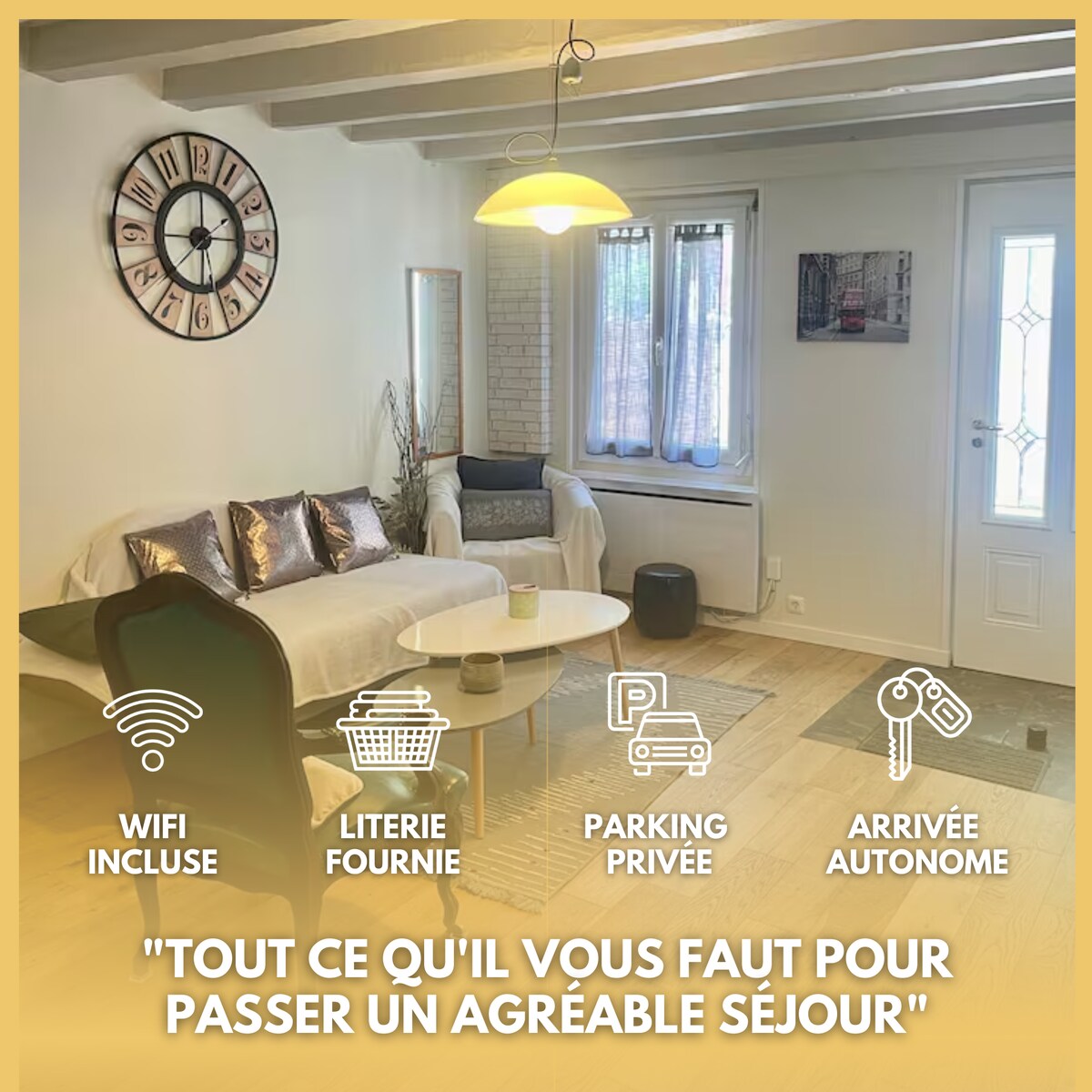 Ce logement situé dans le centre ville du « vieux gonesse » , dans une charmante petite bâtisse , situé à 10 mn de l’aéroport CDG , du centre commercial aéroville , Paris nord , Proche également du parc d’attraction parc Astérix et Disneyland Paris , à 25 min de Paris en voiture , à 900m du parc de la patte d’oie. Situé dans un quartier très calme et convivial , vous disposerez d’un petit espace vert dans la cour et bénéficierais d’une place de parking gratuite, logement équipé.