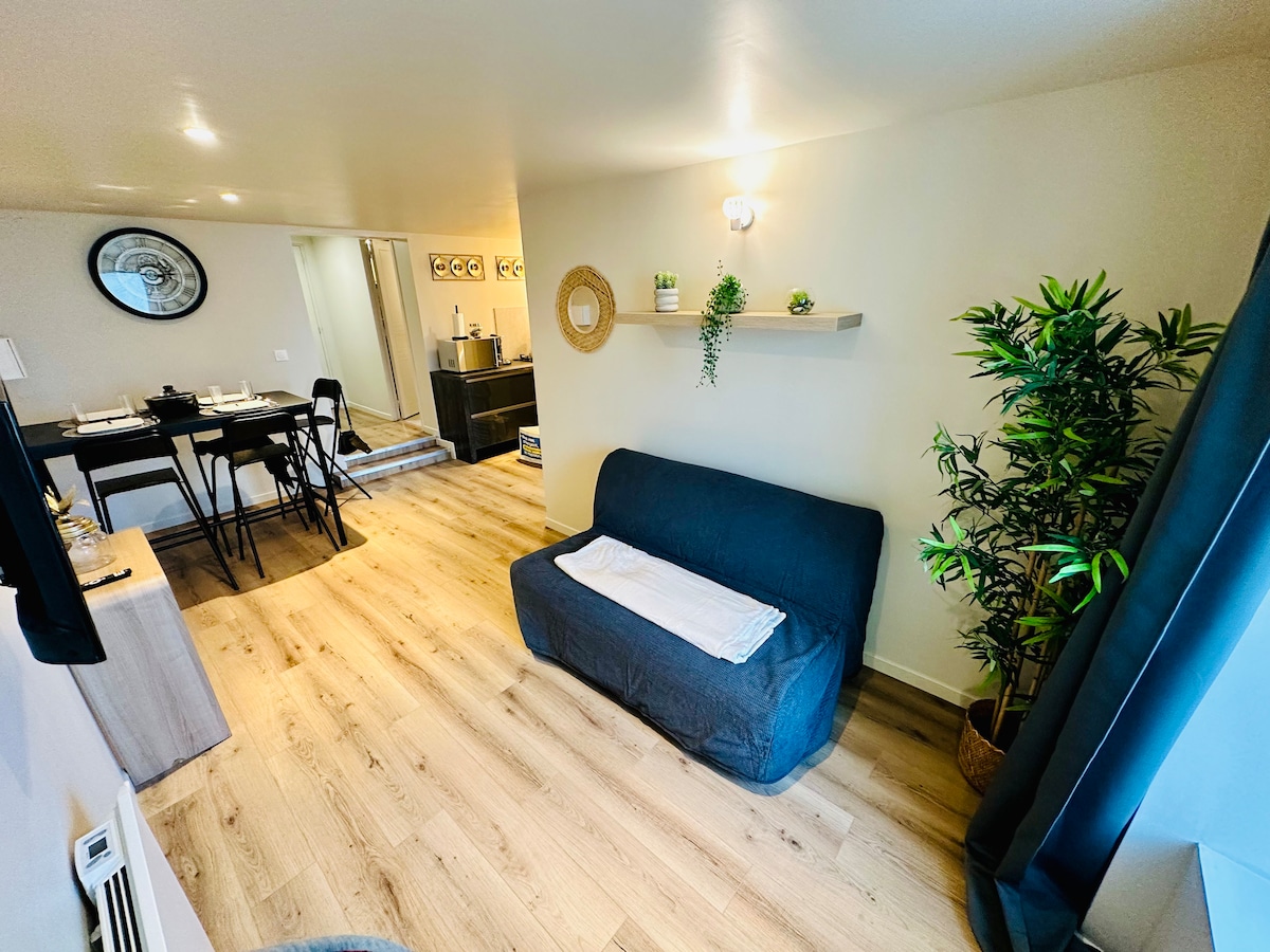 For a friendly, family-friendly and comfortable stay, discover "le P'tit Vert", renovated in our old attic, and open in early 2025. The living room opens onto a pleasant terrace on stilts which offers a beautiful view of the garden. Close to basic shops, the cottage is ideally located to discover the must-see sites and places of the department: Suisse-Normande 10 min away, Falaise and its Ducal castle 25 min away, the beaches of the Côte de Nacre 35 min away and Caen - regional capital - 25 min.