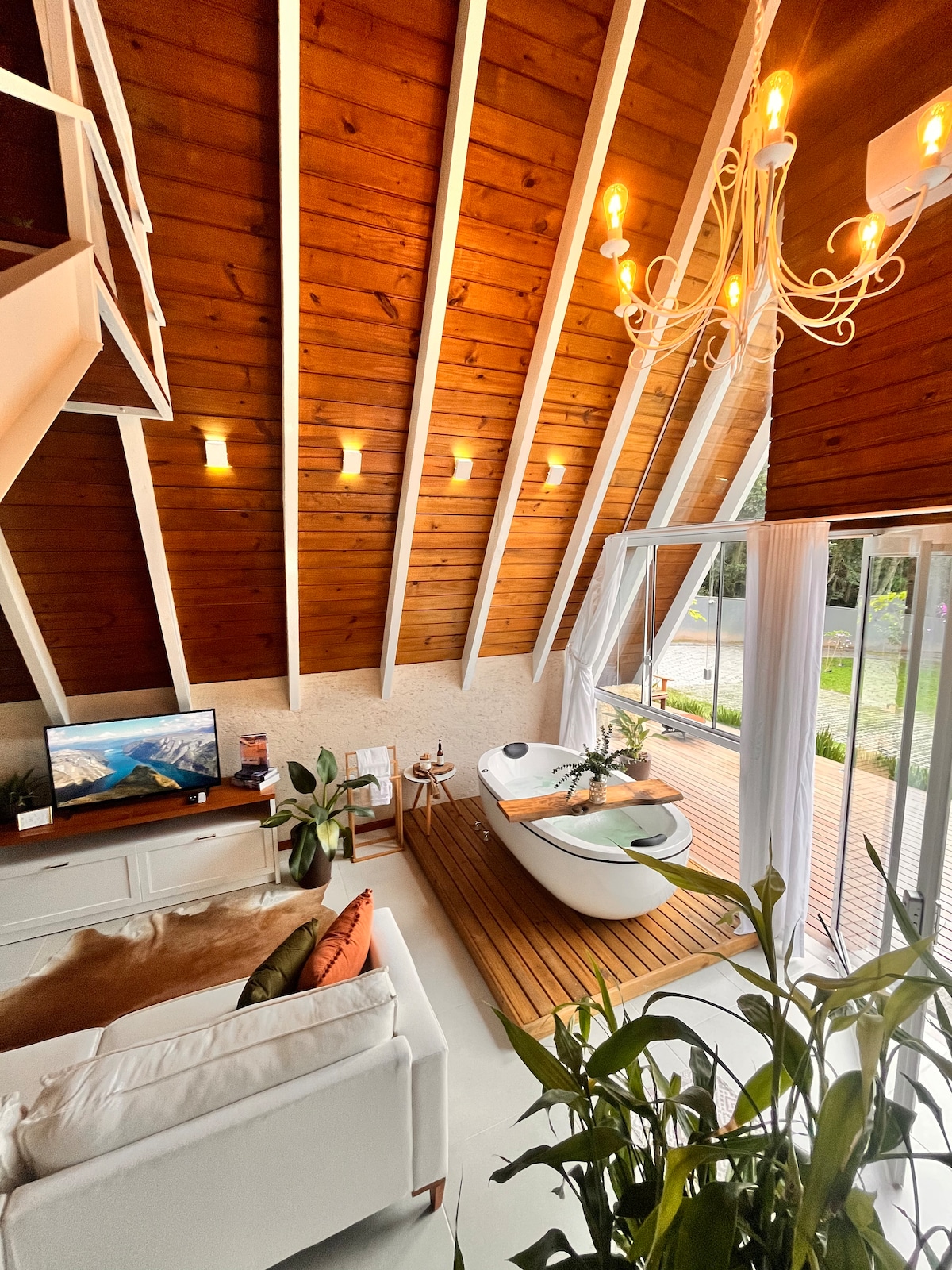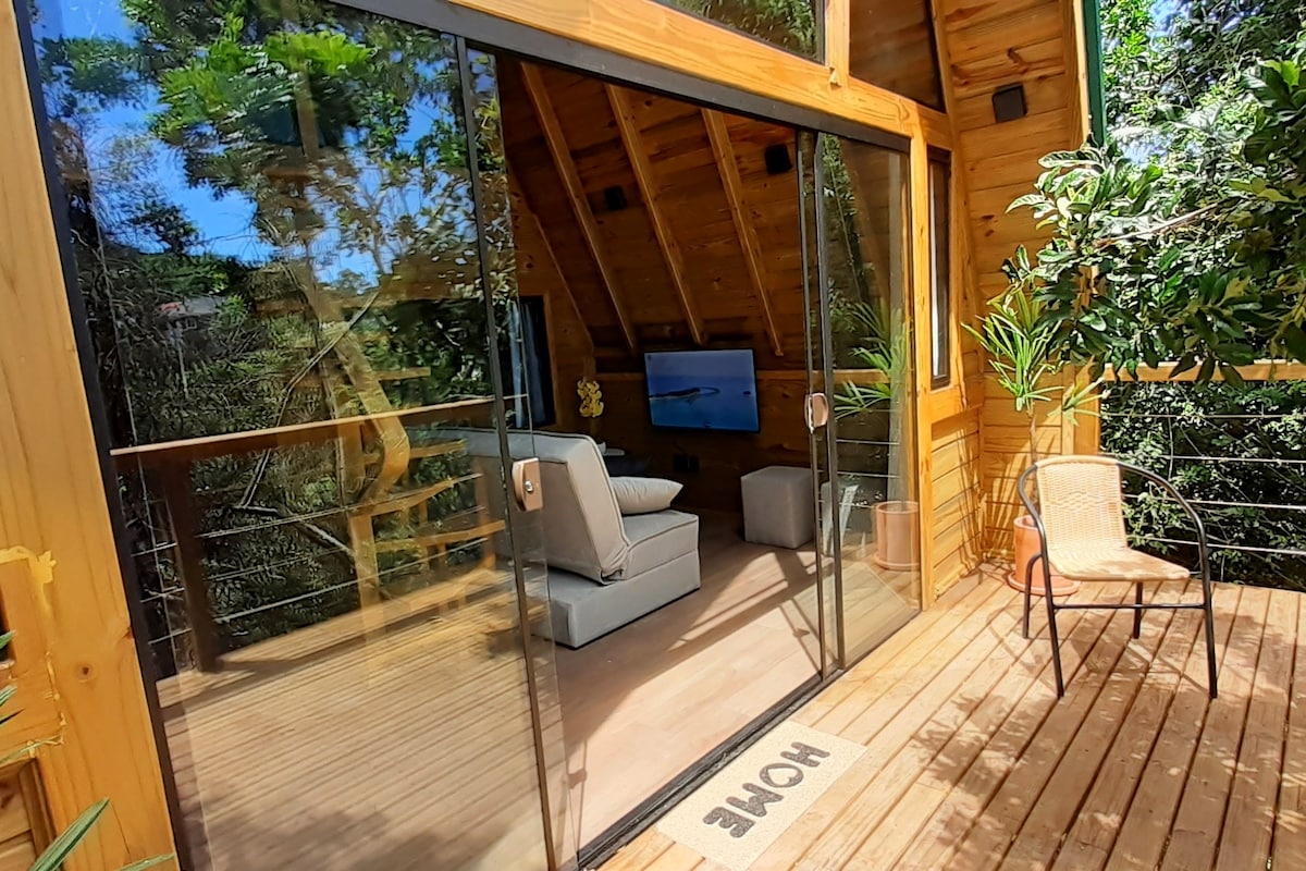 Somos o @greenhouseexperience Um refúgio exclusivo em meio à natureza, a apenas 3 km de Jurerê Internacional. Nosso chalé, perfeito para casais, oferece o conforto essencial para uma experiência inesquecível de conexão com a natureza. Relaxe na varanda cercada por árvores, aproveite a sauna seca, a jacuzzi ao ar livre e aqueça-se à beira da lareira a lenha. A propriedade também conta com uma unidade residencial e outra cabana, onde funciona um espaço terapêutico que atende hóspedes e visitantes.