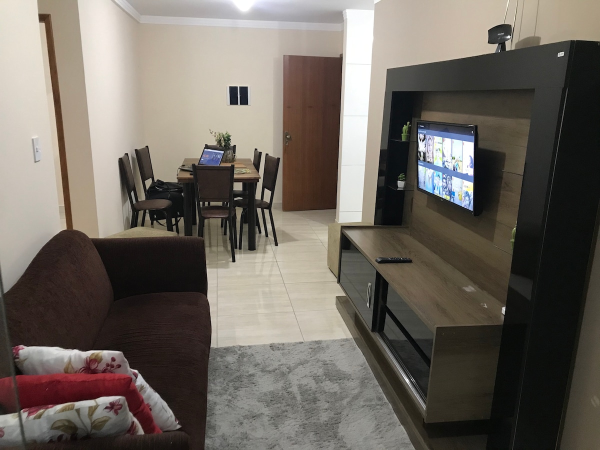 Apartamento novo, com móveis planejados, muito aconchegante e arejado. Totalmente equipado para que você sinta-se em casa! Dispõe de vaga de garagem, quartos climatizados, cozinha completa, lavadora de roupas, sofá retrátil e muito mais! Localizado na área central da cidade!! Nossa equipe estará a disposição para auxiliar quando necessário e trazer todo conforto para sua estadia.