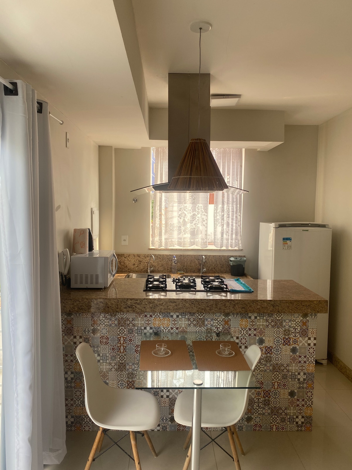 Flat confortável localizado no vila bretas na rua Moreira Sales, seguro e bem localizado. Contamos com garagem para carro e motos, sistema de vigilância por monitoramento por câmaras 24h/dia. Varanda panorâmica. Perto de supermercados, farmácias e padarias. Suíte com ar condicionado, armários, mesa de escritório, chuveiro quente, geladeira, Wi-Fi, tv 32”, guarda roupas. Microondas, sanduicheira,Armários de cozinha com panelas, talheres, copos e pratos.