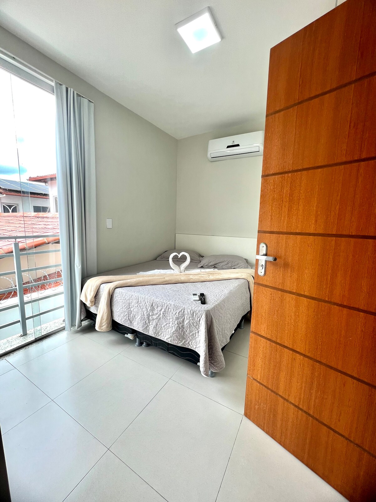 Espaço compacto e elegante, perfeito para quem busca praticidade. Composto por uma suíte completa com ar condicionado, TV de 32", Wi-Fi, cozinha equipada. Fácil acesso ao portão de entrada, à lavanderia e à área de fumantes.