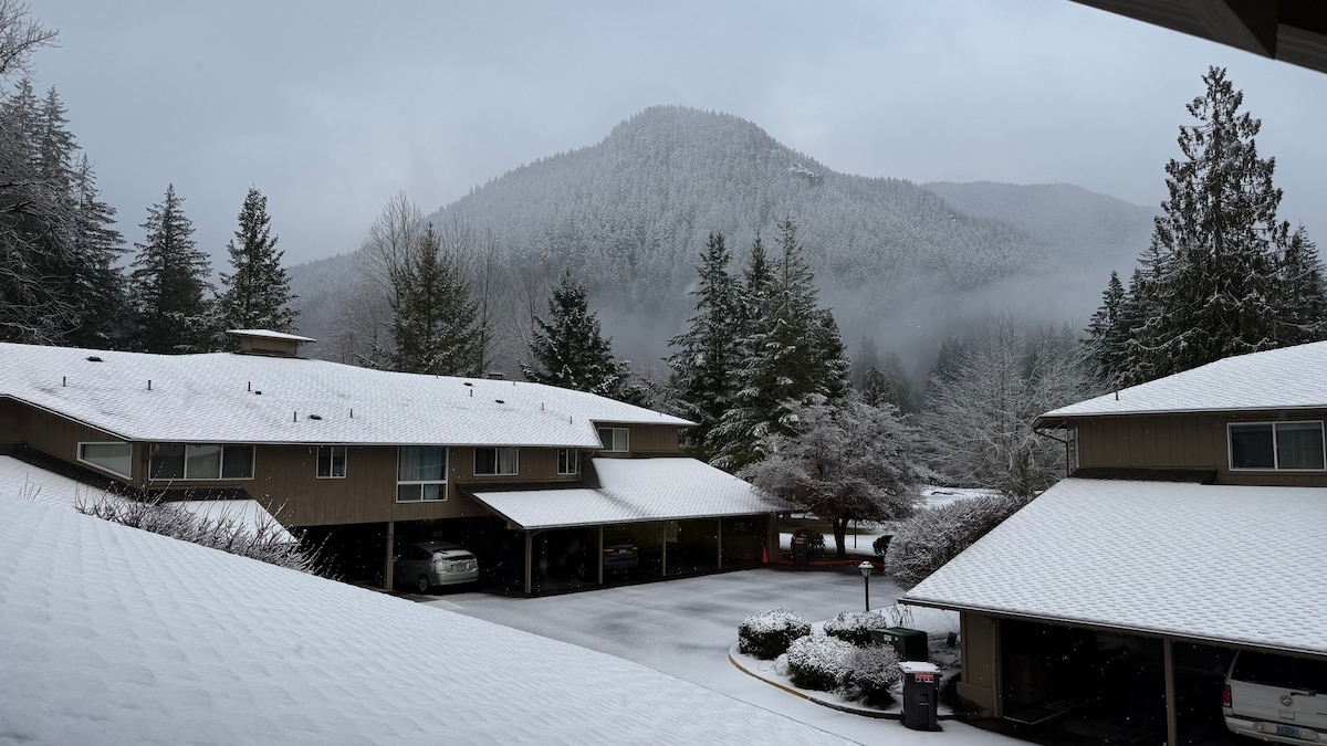 ✨ Cozy Mt. Hood Condo Steps from Slopes ✨ 🏔️ Mountain views from your kitchen & living room 🛏️ King bed + sofa bed sleeps 4 🍳 Full kitchen with dishwasher & coffee maker 🛋️ Electric fireplace, cable TV & fast WiFi 💻 Laptop-friendly workspace with desk ⛳ Right on the golf course at Fairway Estates 🐾 Pet-friendly with private entrance & in-unit laundry 🎿 Minutes to ski resorts, hiking trails & Welches village. Free parking.