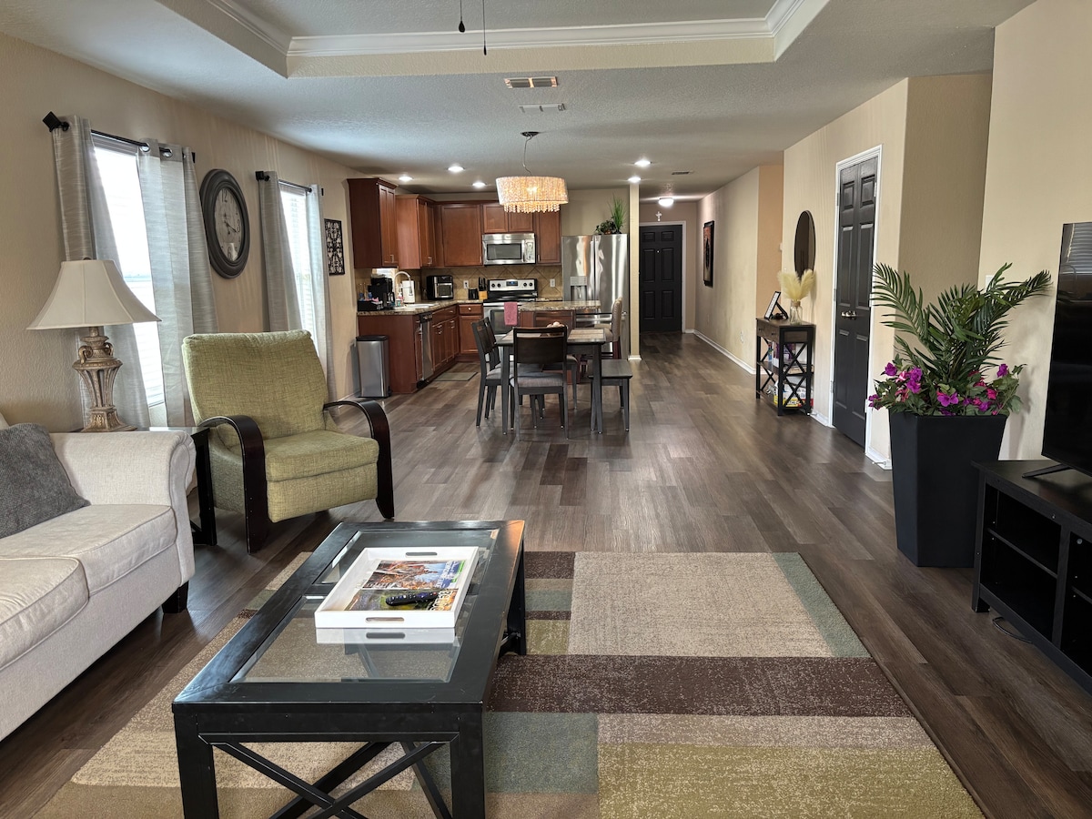 ***Community Pool is CLOSED as of OCT. 31st until May 2025*** -2 Kings, 1 Queen, 1 full, 1 twin mattress, 1 Pack & play, & 1 queen Air mattress -5 smart tvs -Wifi -Office area -Pack & Play -High chair -Dining area seats 10+ -2 full baths (Separate tub & shower + 2 vanities) -Hot water avail -Washer/dryer (detergent not provided) -Coffee bar -Mins from shopping centers, grocery, restaurants, movie theatre/bowling, shooting range, Medina Lake ***Approx. 10 mins from Seaworld***