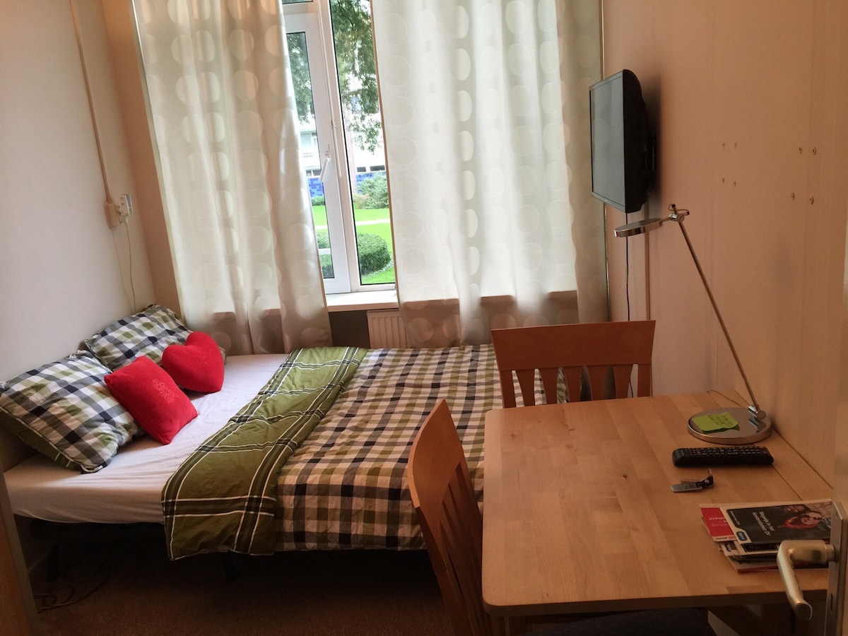 The private room with ensuite bathroom is situated on the backside of house. Together with the other room it is my Bed & Breakfast. Renovated in February 2018 Repainted in 2024 Check-in from 08:00 - 19:00 (free luggage storage if room is not ready or departure is later than 11am checkout) Room is ready at 14:00 No baby or 3rd person!