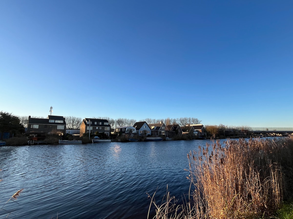 Op 15 min rijden naar Amsterdam, bevindt onze rookvrije suite + terras aan het water, naast kasteel Muiderslot. 5 minuten lopen naar het historische stadscentrum met vele restaurants, bars én de veerboot naar het eiland Pampus, met museum en restaurant! Op steenworp afstand van Amsterdam een suite met eigen ingang en badkamer ensuite, koelkast, gratis parkeren! Strand in 5 minuten. Wandelen, zwemmen, surfen, kayak, suppen, yoga, pilates, (huur)fietsen, relaxed genieten in UNESCO Werelderfgoed.