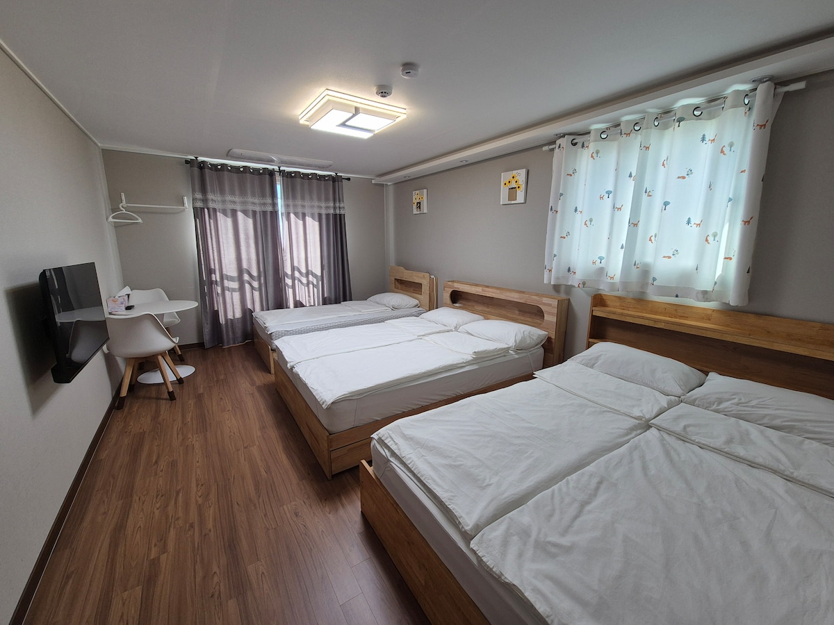 【三人间,距离仁川机场10分钟,距离云西站5分钟】免费停车、接送、早餐