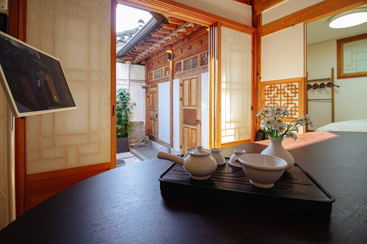 Origin is a traditional hanok house located on the stone wall of Changdeokgung Palace, a UNESCO cultural heritage. Located in the 2nd view of Bukchon, this hanok yard is filled with old trees from Changdeokgung Palace. It is located in a quiet place where you can hear the chirping of birds. There is no inconvenience at all to stay. Bukchon Hanok Village, Insa-dong, Ikseon-dong, and the National Museum of Modern and Contemporary Art are all within a 10-minute walk.