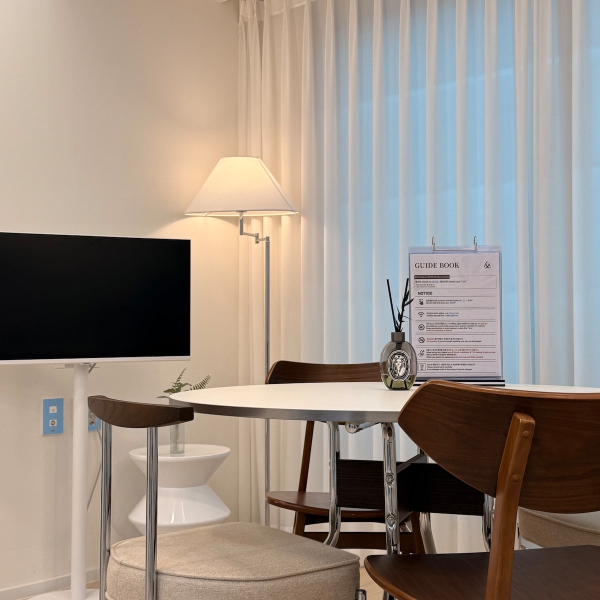 *수압해결* 안녕하세요! 신규 오픈 했습니다 무엇보다 청결에 신경 쓰겠습니다 침구류 매일매일 세탁-건조-소독 하여 교체합니다 믿고 안심하셔도 돼요😊 수압 문제 해결 하였습니다 🙇 카페와 호텔에 온 것처럼 편안하고 고급스러운 분위기를 강조하고자 쾌적한 침구류, 인테리어에 집중하였습니다 🎮 Playstation4 이용가능 👾 📍넷플릭스 유튜브 프리미엄 제공 🤍생수 500ml x 2 제공 저의 숙소에서 편안한 잠자리와 LP 음악을 들으며 커피 한 잔의 여유, 재밌는 게임 즐기시고 이쁜 추억 쌓으셨으면 좋겠습니다. 여유롭게 늦잠을 주무셔도 좋습니다! 퇴실시간은 오후12시입니다. *잠귀가 밝으신분은 미리 말씀주시면 이어플러그 제공 하겠습니다. ❗️저의 프로필을 눌러보시면 다른숙소도 준비되어 있습니다 모두 호스트 본인이 정성을 다해 최대한 신경 쓰며 운영합니다 놀러오세요🩵 주차 무료!! 자비를 부담하여 주차 걱정 해결해 드리겠습니다!😄