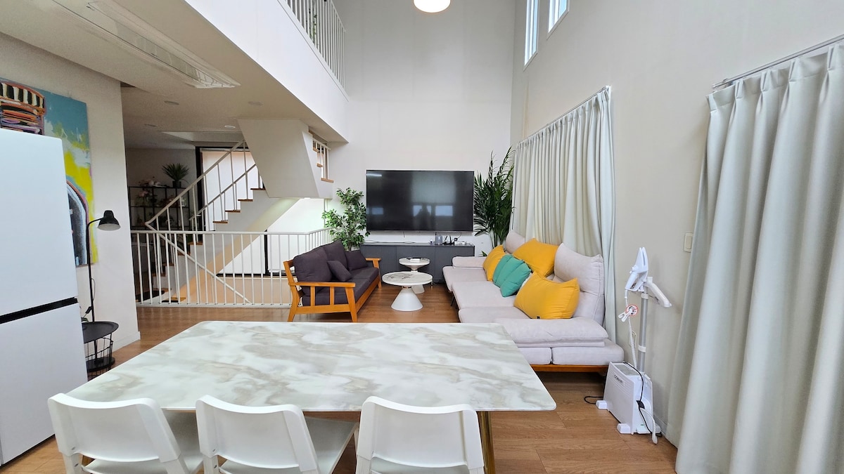 漂亮别墅50多平方米 三层复式楼,电视(85英寸),漂亮的房源,咖啡街,靠近机场到达