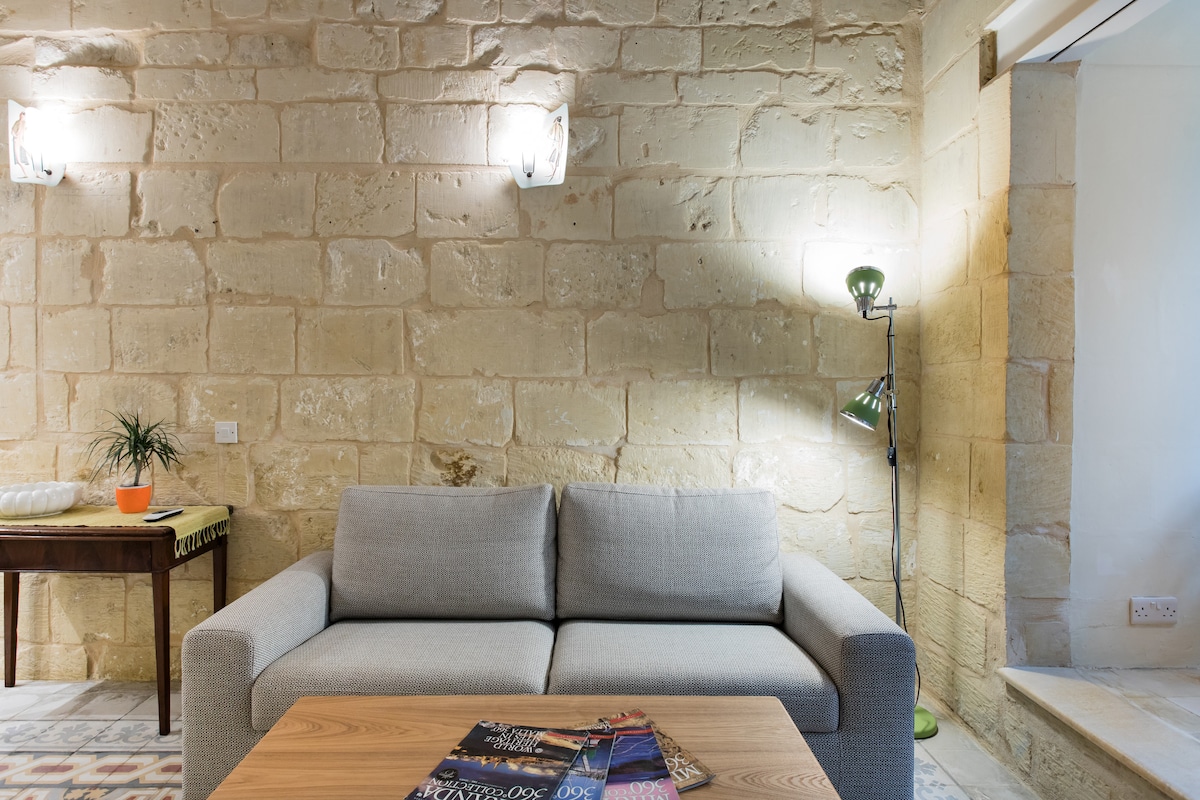 Our charming newly renovated 300 year old studio apartment, sits in the heart of Gozo's Capital City. The ground floor property enjoys an abundance of natural light and is finished with natural stone floors and beautiful exposed stone walls. Rooms enjoy high vaulted ceilings keeping the spaces cool and fresh for the sunny weather of Gozo.