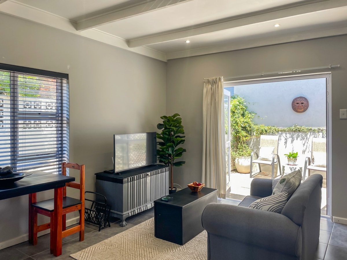 A quiet garden cottage in a busy area of Port Elizabeth. Close to everything you need, either to relax and explore or to make that business trip successful. Close to grocery stores, Cancercare, Netcare Hospital, Grey College, major banks and Cape road. Car rental company around the corner!