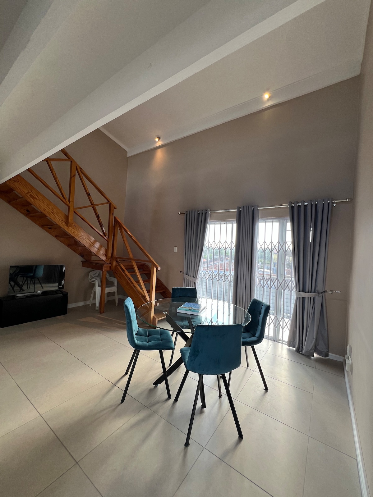 Kick back in this calm, stylish space. A beautiful self-catering loft with private entrance located in Gqeberha (Port Elizabeth). It is ideal for business and leisure travellers. The kitchen is equipped with a fridge-freezer, stove, air fryer oven, microwave, cutlery and crockery, cooking basics, and tea- and coffee-making facilities. Furnished with a comfortable couch, Aircon, Electric blanket, Smart TV, fast Wi-Fi. Guests have access to a private garden and braai area. A guest Favorite!