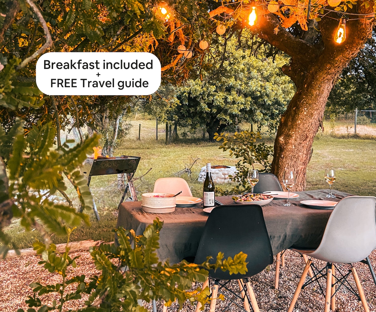 Experience the perfect blend of nature and comfort with your own swimming pool at our small family farm. You'll be surrounded by wild peacocks, free-range chickens and donkeys. Plus: - FREE 28-Page Garden Route Travel Guide - When you book with us, you’ll receive our exclusive Travel Guide full of hidden gems, activities, national parks, and extra safety and travel tips for your journey. - Homemade Breakfast Incl. - 2min Drive to 1# ranked Beach in Town - 1min Drive to Golf Club with Zebra's