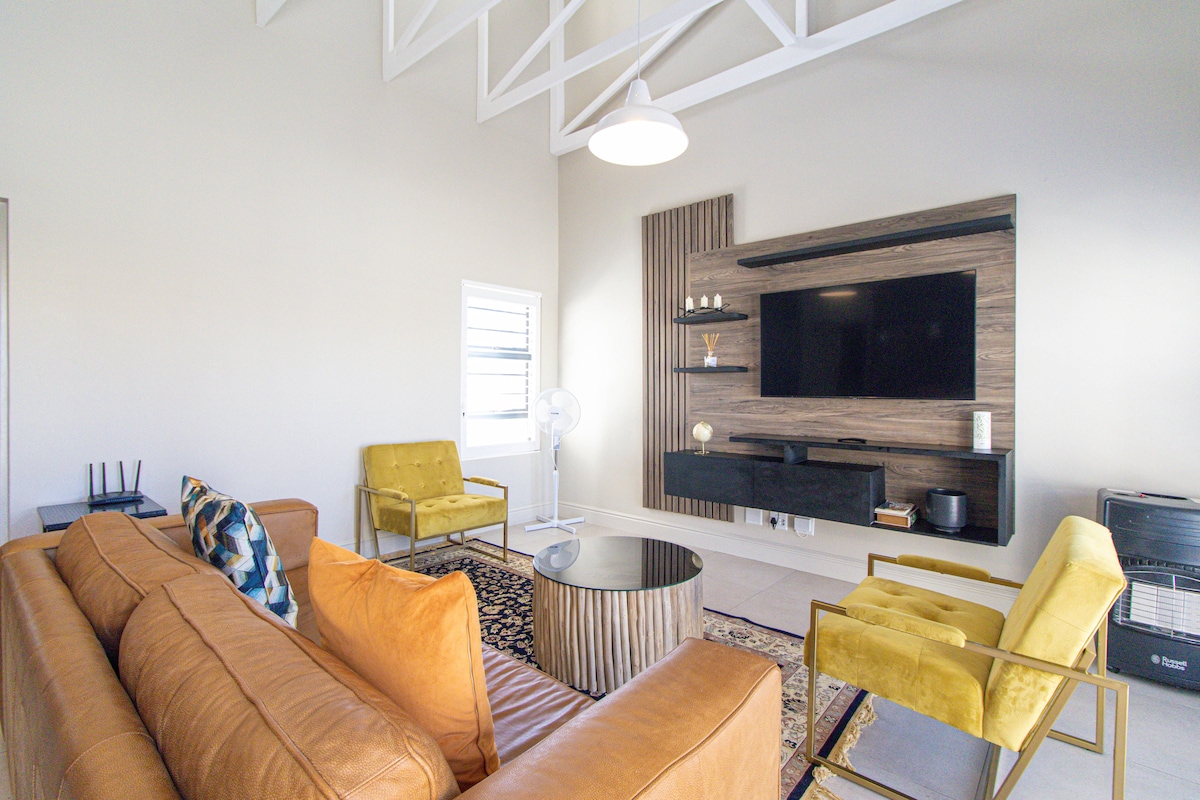 A beautifully styled, safe, secure, QUIET townhouse complex, away from the hustle and bustle in Port Elizabeth. Open plan living space, which offers a fully equipped kitchen with everything you will need plus an indoor fireplace. Kick back with a large flat screen T. V. with Showmax, Disney+ Netflix and BATTERY BACK UP Wi-Fi. With Free-Parking! Extra Lights and gas stove for available. If you're looking for a lock up and go, then this is the place for you. Highly recommended!