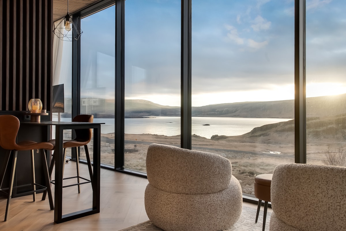 Spectacular place´ Wake up to the ocean dancing, birds singing and seals right outside your window. Approximately 50 kilometres outside of Reykjavik, more precisely, in Hvalfjordur is a little cottage located right by the ocean shore. On the ground floor is a joint kitchen/living room includes a microwave and a dishwasher. The kitchen view is the sea itself. Toilet with a shower On the second floor has a bedroom loft with 2 queen size beds and one single person’s bed.