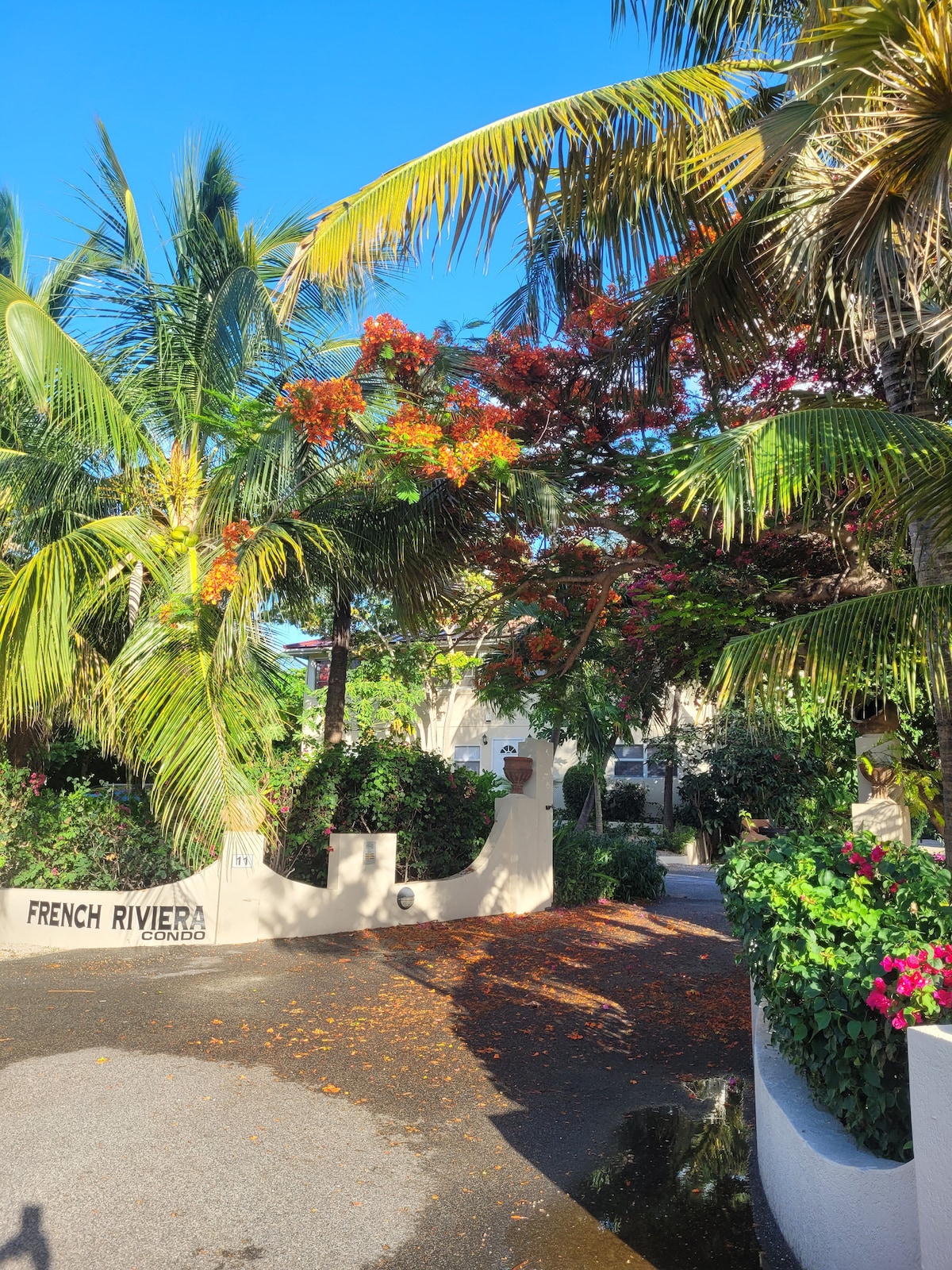Peaceful Palm Trees with a peek of Ocean View! 10 min walk to the beach or 10 min drive to Grace Bay. Located on 2nd floor of the higher buildings, this condo is a spacious studio with Queen Bed, full kitchen, living room, bathroom, washer and dryer, Wifi and free parking. The large balcony has a pretty view over soothing palm trees dancing in the breeze, with a peek at the ocean in the distance. A great place for morning coffee or relax after long day at the beach or by the pool.