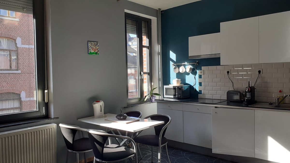 Situated in the heart of Liège, the studio has a direct access to the "Médiacité" shopping mall (Primark, restaurants, supermarkets…). Bus and taxis are located right by. The "Guillemins" central train station is close by. Easy parking. Feel free to contact me if you have any questions.