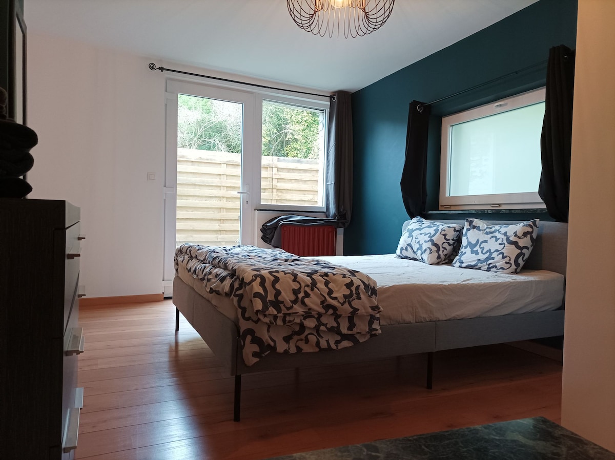 appartement de 82m2 dans Un cadre calme et reposant de campagne avec vue imprenable , à 10 minutes du centre de liege en voiture, 2 minutes de l autoroute Namur- liège et à 5 minutes de l aeroport de Bierset. Dans une propriété privée totalement cloturée. Chambre avec lit double et salon convertible 2 places. Salle de bain, grand salon , cuisine équipée et toilette indépendante , terrasse couverte et ext,jardin. place de parking gratuit