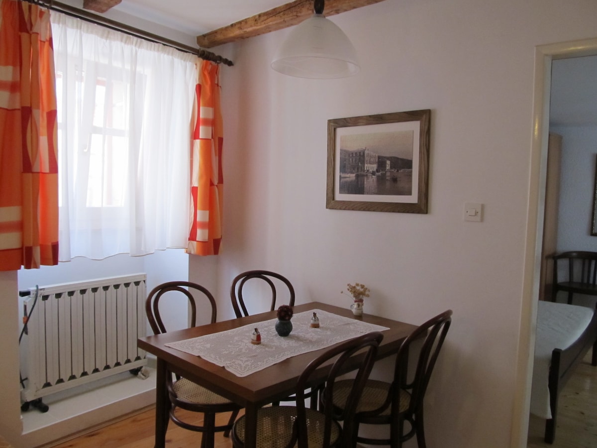 Spacious apartment in a large,well-maintained family house with a garden,in a quiet residential street.5 min walk to Old Town,shops and beaches. Relaxed,pleasant and safe surroundings.Comfortable all-weather base for longer stays,great variety of activities :beach,walks,diving school,kayak,fishing,hiking,biking,trips to nearby islands of Lošinj,Susak and Unije.Excellent local fish,wine,lamb,cheese,olive oil and Mediterranean flora/herbs,locally grown vegetables.Unspoiled,authentic!