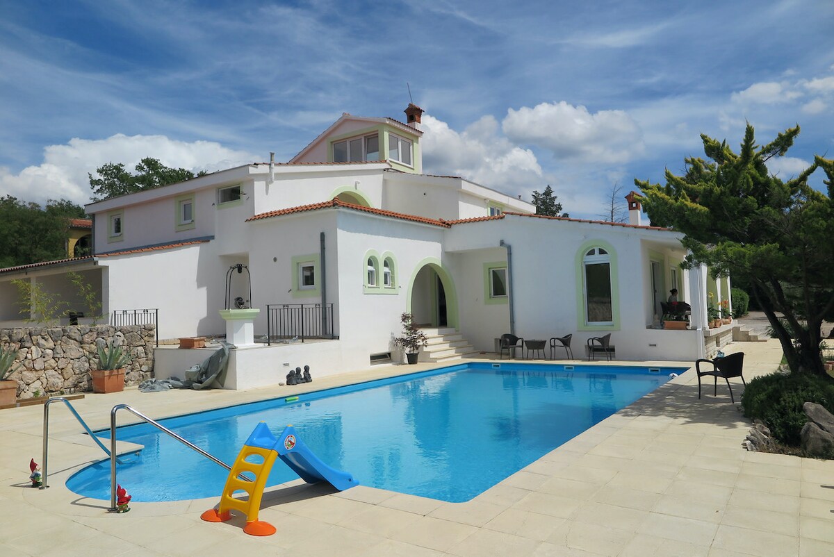 The luxurious newly built villa Lusarci with large pool is ideal for a perfect holiday. On the ground floor, there is a kitchen, large dining room and living room. Four bedrooms are spread over two floors, as well as 4 bathrooms and one toilet. The villa has a large balcony with chairs and a table where you can enjoy the sunset. On the terrace next to the pool there is a barbecue with a table and chairs. The Pool is heated from 25.04.-15.06. and from 15.09.-05.10.