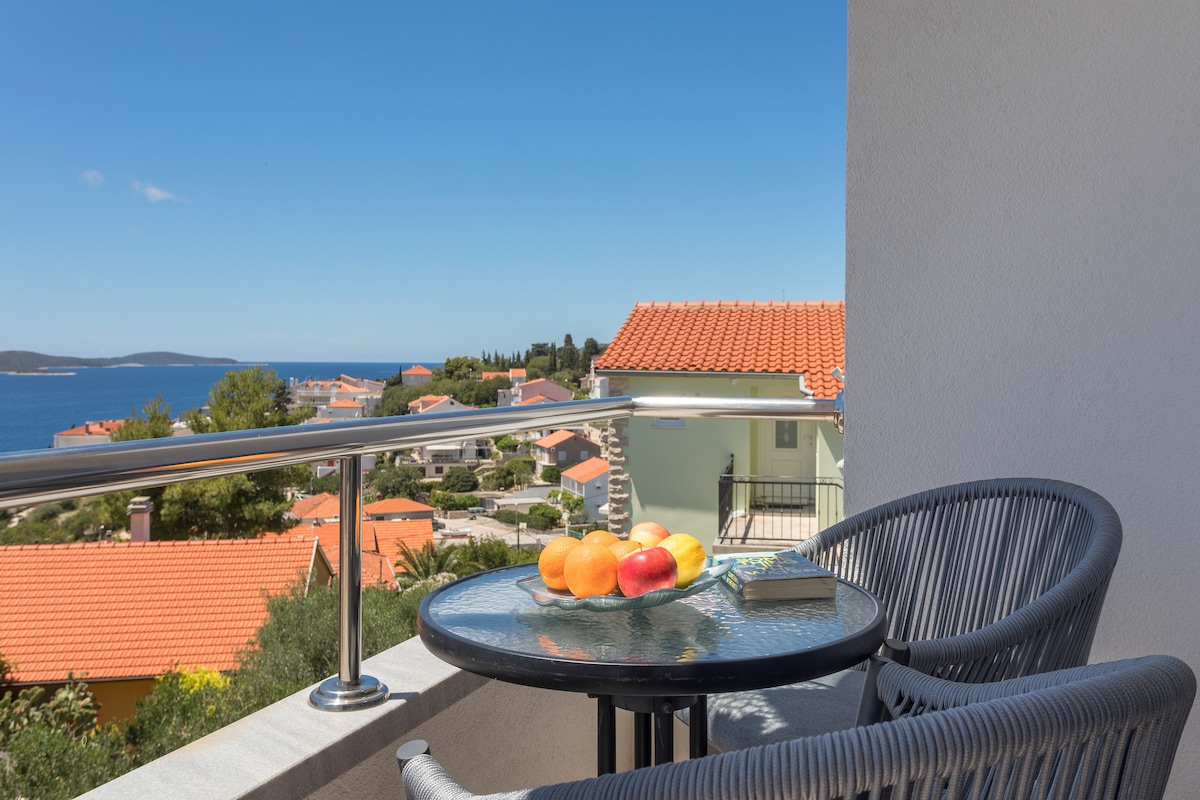 Duplex three-bedroom apartment is ideal for family with 3 kids or group.There are 3 rooms,2 rooms have bathrooms and 1 room in galery have toilet.Kitchen is with terase with sea view.Apartment is situated in Milna,small willage only 4 km from Hvar.There are 8 restourants,bakery,small market,atm.We do not allow any kind of party.Price for animal Is 10e per day.