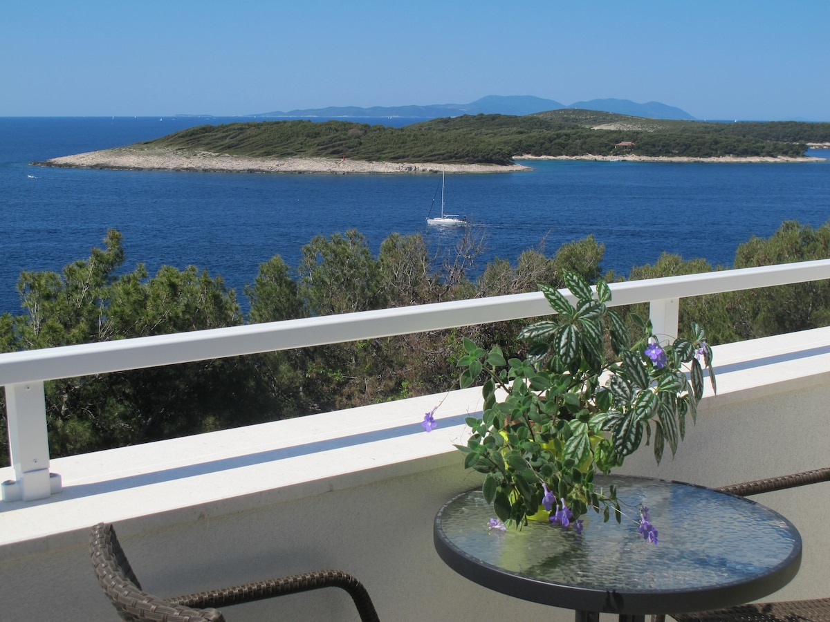The house with the studio apartment is located near the local marina „Bilo Idro“ and on a cliff above the sea. From the outside area of the apartment is a stunning view to the west of the island of Hvar (towards the town of Hvar), to the Red Rocks and the Adriatic sea. The house is surrounded by old pine trees that provide natural shade and refreshment in the hot summer days. The studio apartment has its own entrance and parking, and a separate outside space.