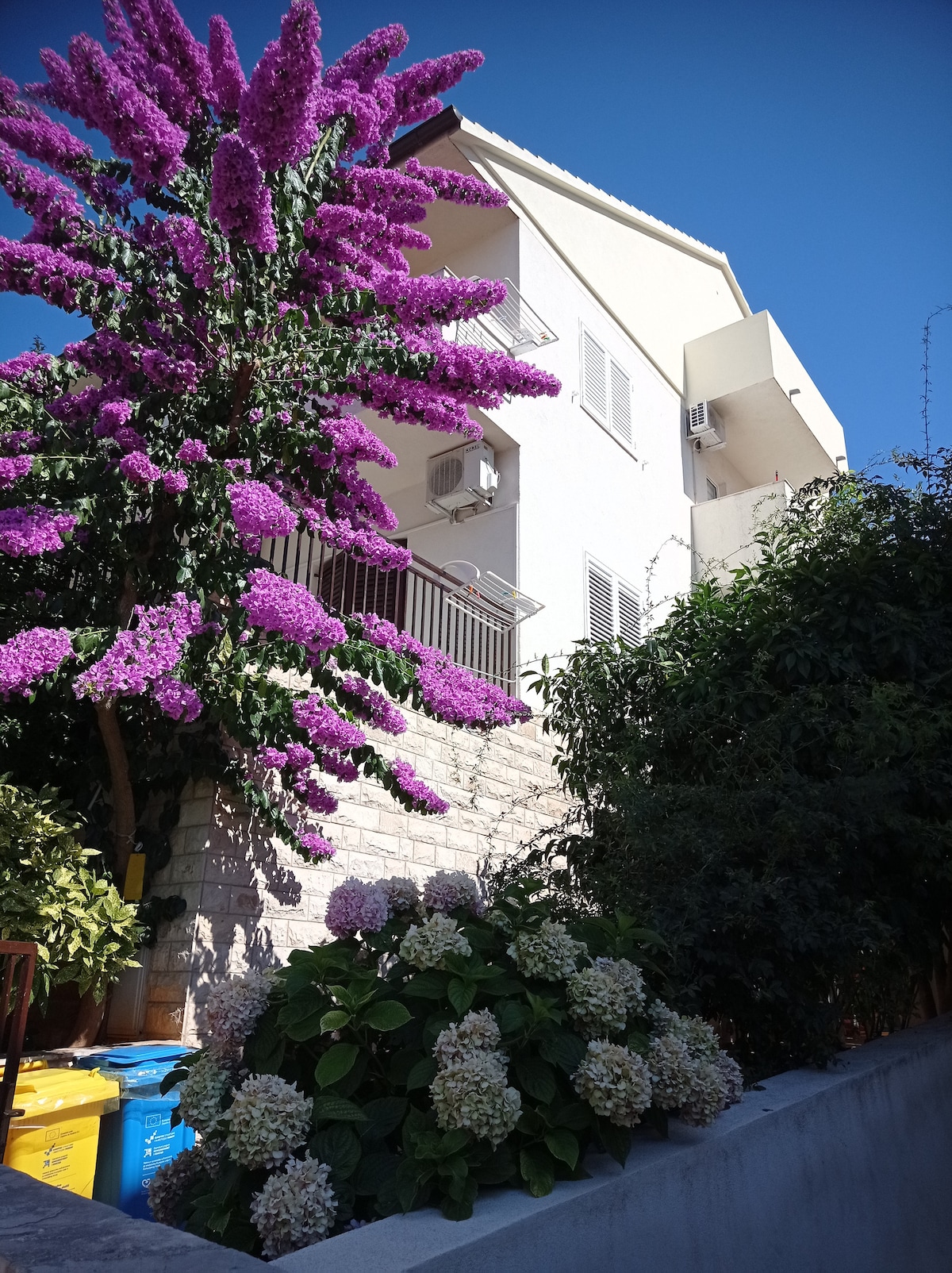 Make your summer remarkable by staying in our large apartment. Located 6 minutes from the nearest sandy and rocky beach "Pokonji Dol", and around 15 minutes from the city center, it holds an optimal distance. Of course, there are countless restaurants and a reliable supermarket down the road. The apartment is composed of 3 spacious bedrooms, large kitchen, 3 modern bathrooms and the main attraction, an enormous terrace of 50m2, ideal for breathtaking dinners. Visit us and enjoy the natural vibe.
