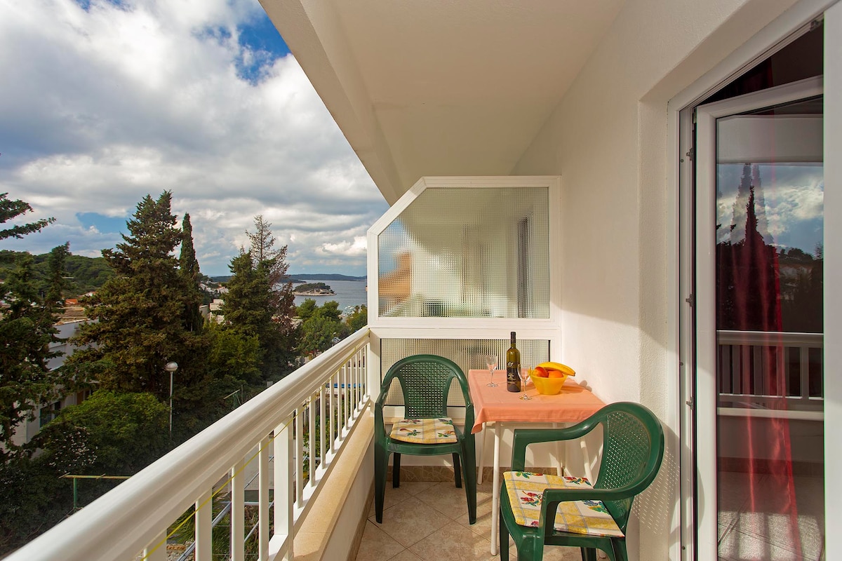 Apartment IVANO is in the house that is located in a quiet and perfect place for your vacation. The apartment consist of 2 bedrooms, bathroom, kitchen and balcony with extraordinary views of Pakleni Islands and Hvar bay.