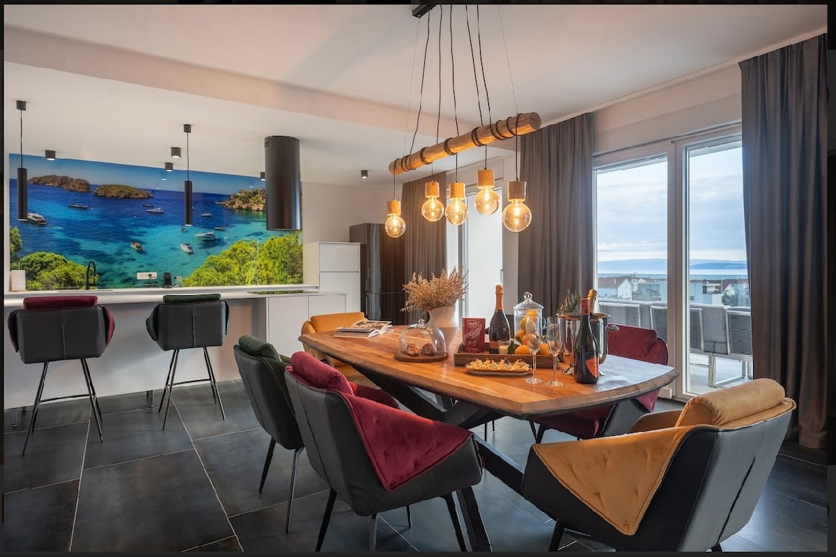 Ovaj moderni smještaj nudi sve što gostu treba :dašak luksuza, privatnost, infracrvenu saunu i predivnu terasu s pogledom na more. Za dodatno opuštanje tu je i vanjski bazen na slobodno korištenje svim našim gostima. Centar Splita ili Trogira je 10 min s autom, a pješke se može doći do centra Kaštel Lukšića te tako upoznati povijest i ljepote Kaštela. Plaža i more je svega 800 m od objekta te se možemo pohvaliti da je na istoj udaljenosti i plaža za pse.