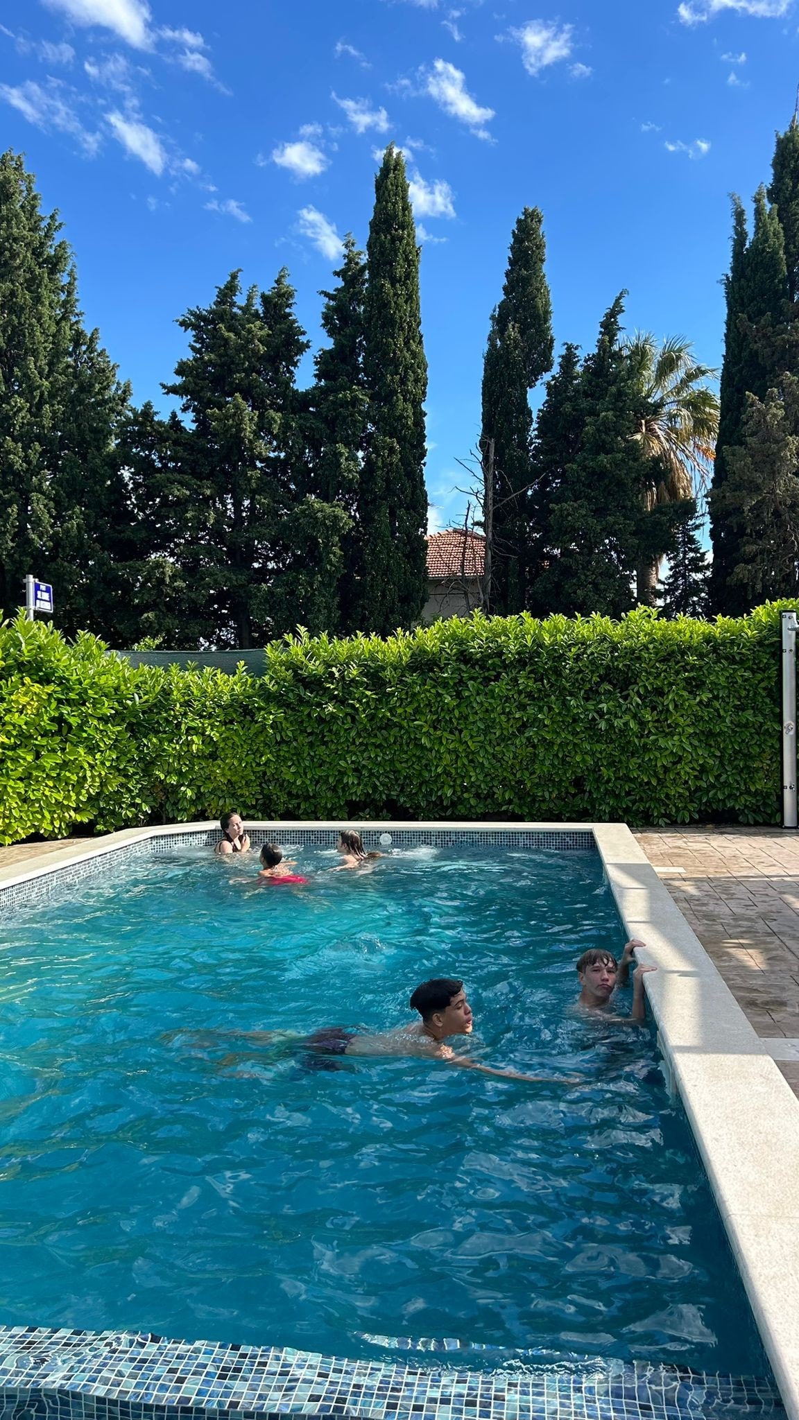 Welcome to Family Harmony, a comfortable apartment for up to 5 guests, located in the peaceful village of Plano, close to Split and Trogir. The apartment features two bedrooms, a bright living area, a fully equipped kitchen, and a modern bathroom. Guests can relax in the 12.5 m heated pool (approx. 26°C) with back massage jets, a central geyser, and lounge chairs with air massage. A separate children’s pool (22 cm depth) is also available, making it perfect for families.