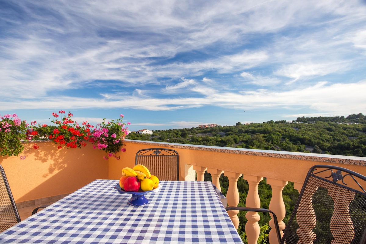 Surround yourself with style in this standout space. Fancy decorated studio apartment for 2 persons situated in small village of Salatic in a family house with 4 apartments and shared seawater swimming pool. Seawater swimming pool (not heated) is open from half of April to half October! Parking place in the yard, air-conditioning and WiFi are included. Fiber optic internet available. Short driving distance to historical Krk town.