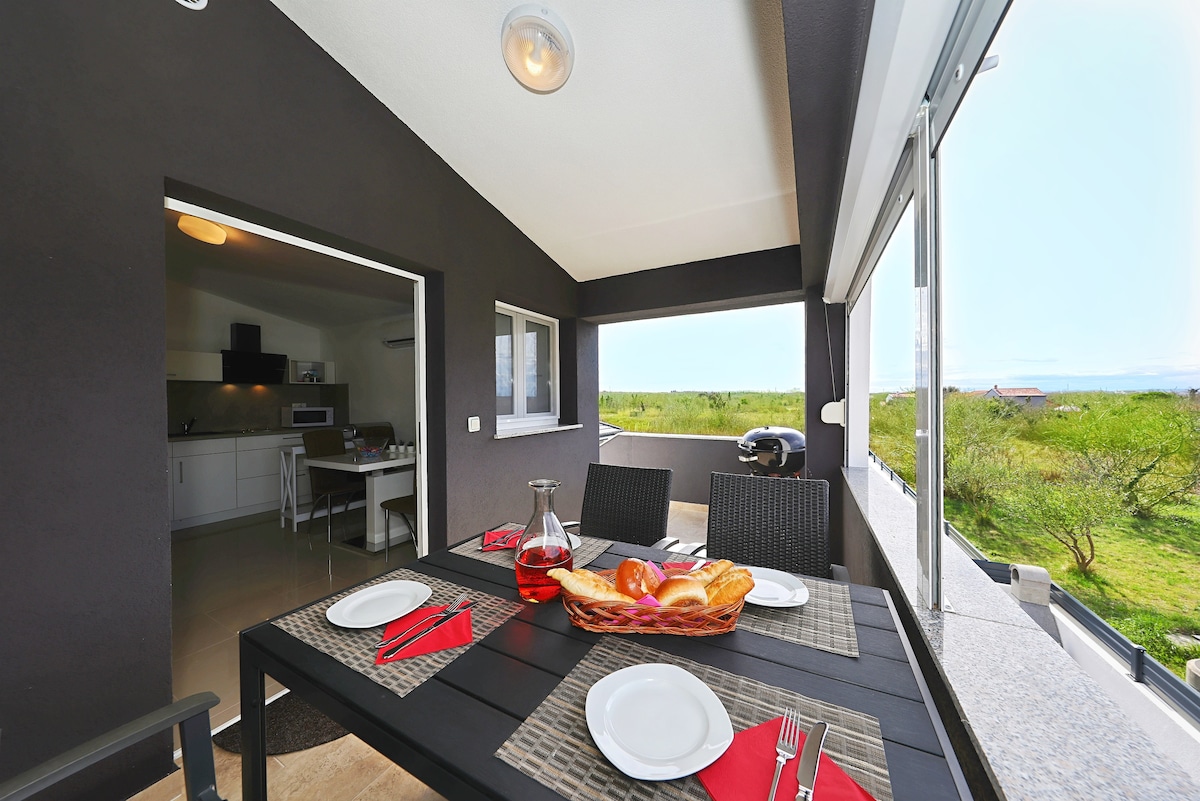 Opustite se sa svojom obitelji u ovom ugodnom smještaju, u mirnom okruženju sa bazenom, Kamado roštiljem, stolom uz bazen, terasom na ulazu u kuću , velikim dvorištem i 2 parkirna mjesta unutar dvorišta. Udaljenost Nin3,5km, Zadar 17km, Airport Zadar 27km, NP Paklenica 45km, NP Krka 60km, NP Kornati 80 km, NP Plitvička Jezera 120km. Okolinu možete istraživati šetnjom ili vožnjom bicikla kroz prirodu. U blizini kuće nalazi se javno malonogometno igralište sa umjetnom travom.