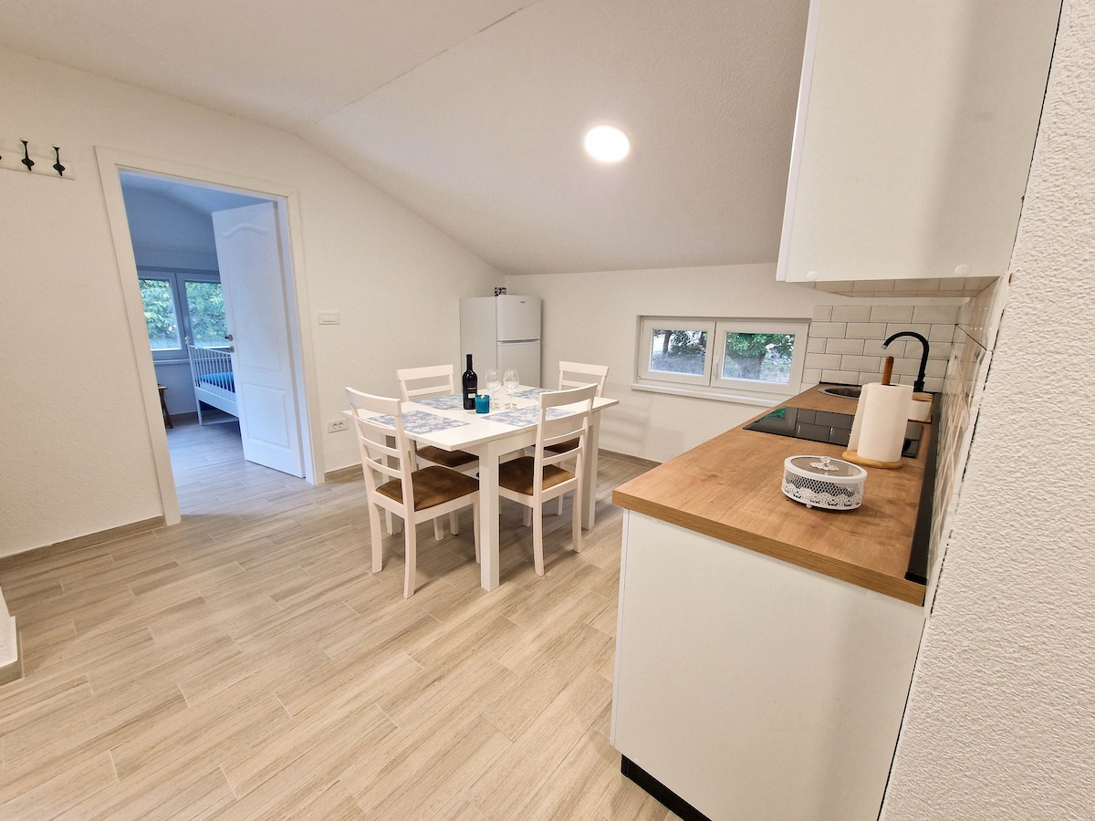 Studio apartment for 2 persons with a pleasant accommodation and beautiful sea view. The are apartments are newly renovated with all the equipment. Distance from beach is 30 m , centar-800 m, ambulance-500 m , restaurat -10, market-20.