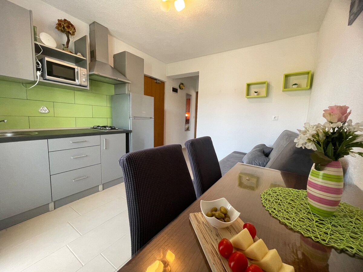 This apartment is located at the central Adriatic coast. With the Velebit mountains behind and sea right in front of you, the views are unique and serine. It is perfect for families and all of those looking to relax away from the crowds. We are also happy to meet all your pets.