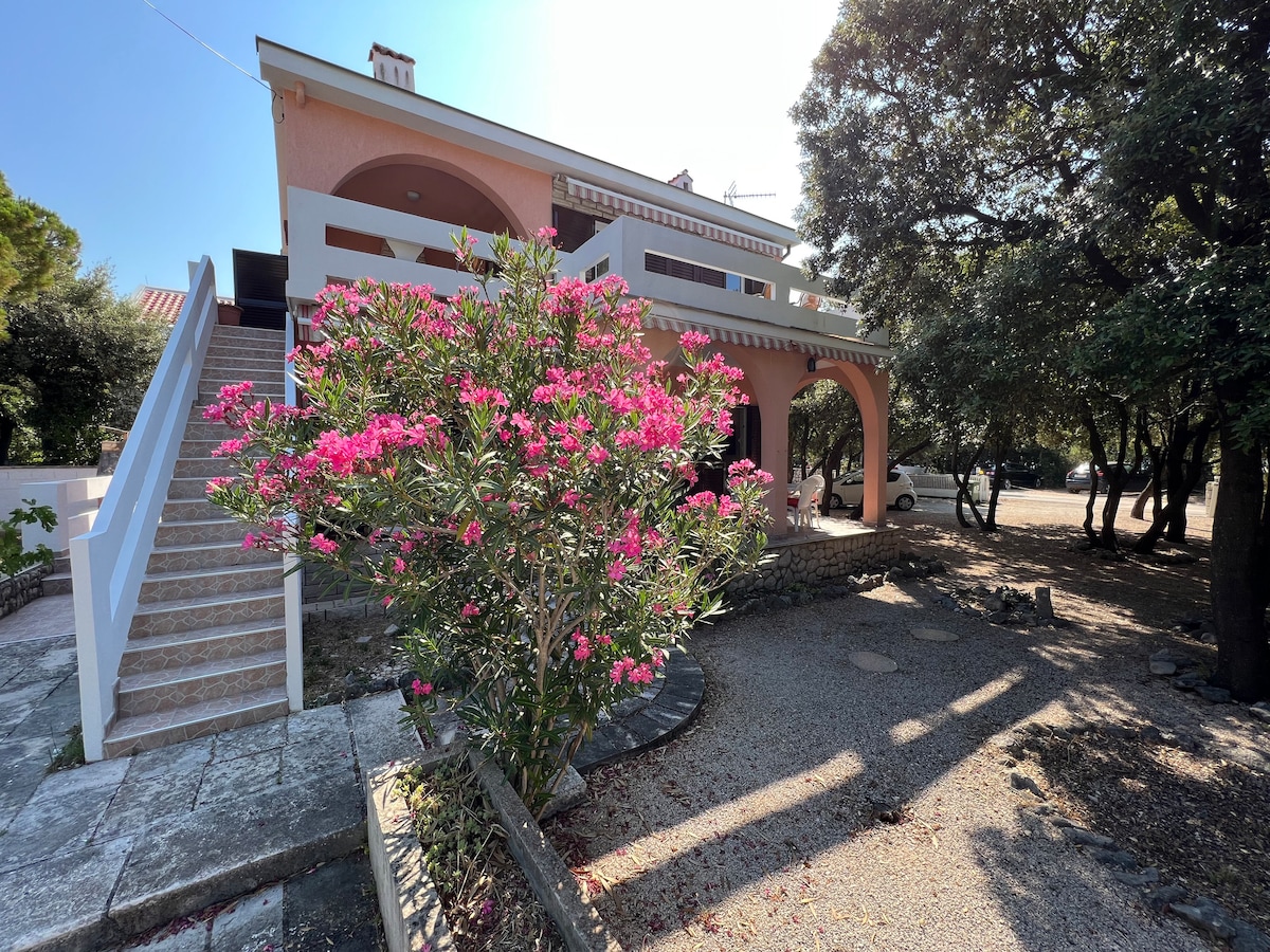 Located directly on the beach in the village of Šimuni. Around the house you can use an outdoor shower, a grill area in the large garden, and private parking. The big sandy beach is just across the street well known for its beautiful old pine trees. The house has three bedrooms in total for max 9 person. On the ground floor there is one bedroom, a bathroom, and a spacious living room with two sofas. On the first floor there are two bedrooms, a small living room with one sofa, and a small kitchen